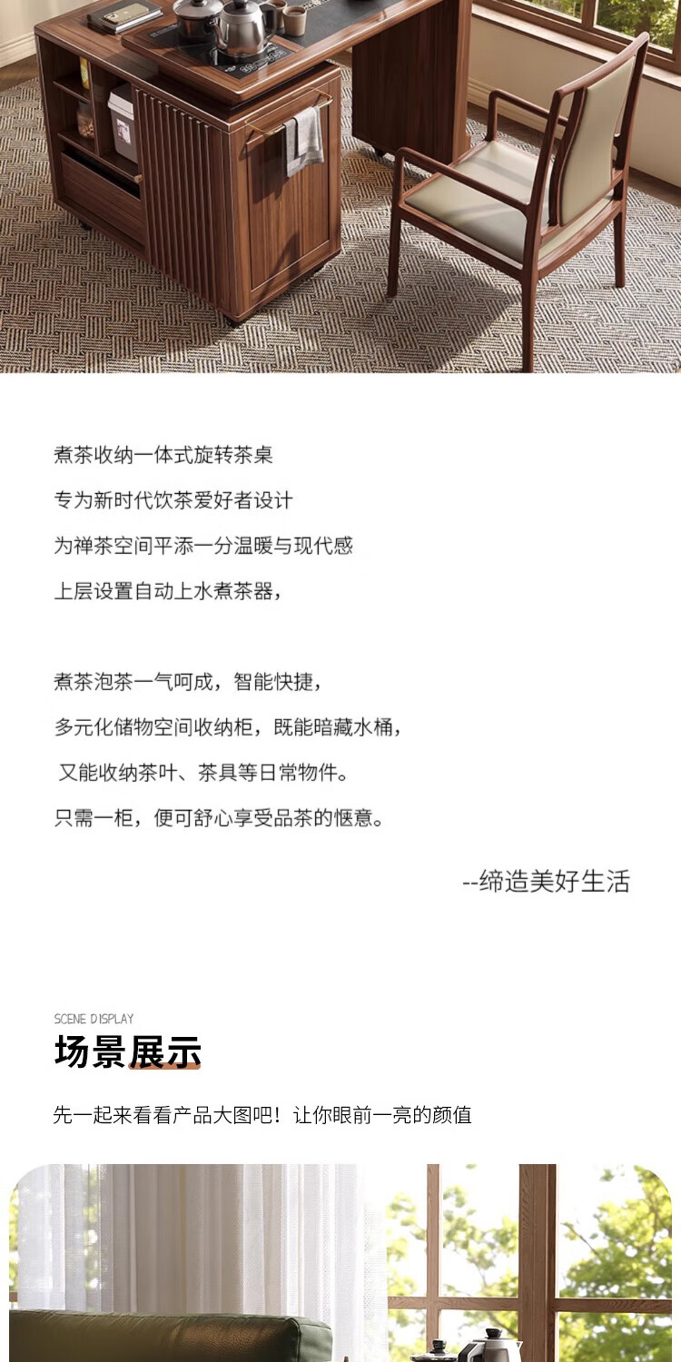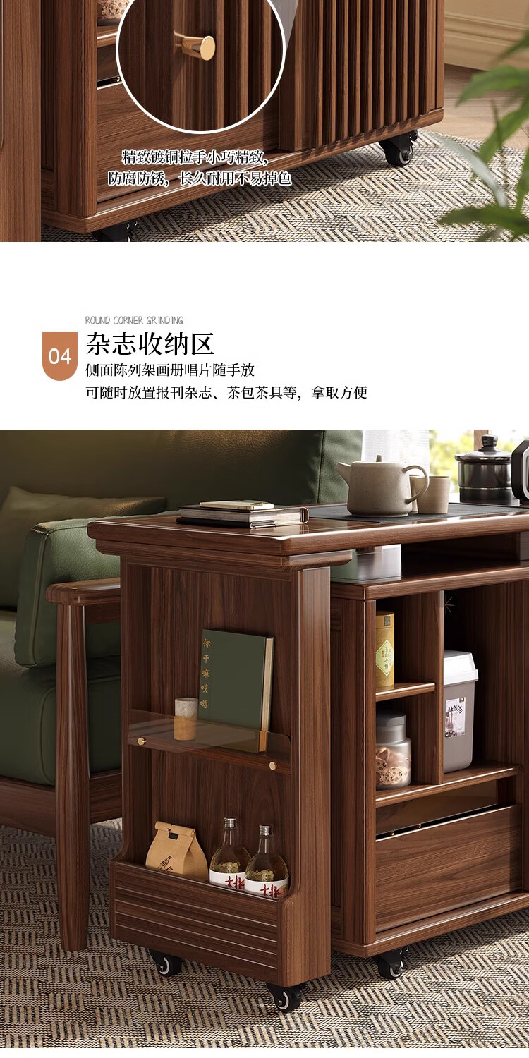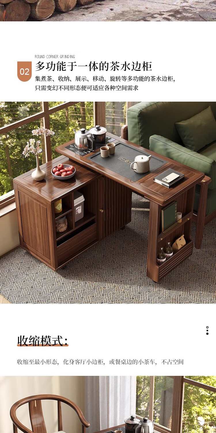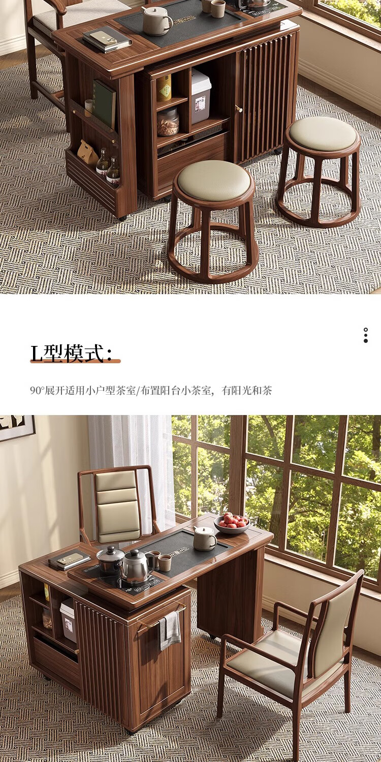 Geya wood language black walnut solid wood tea table integrated rotatable small tea table new Chinese style creative kung fu coffee table movable tea cabinet tea table