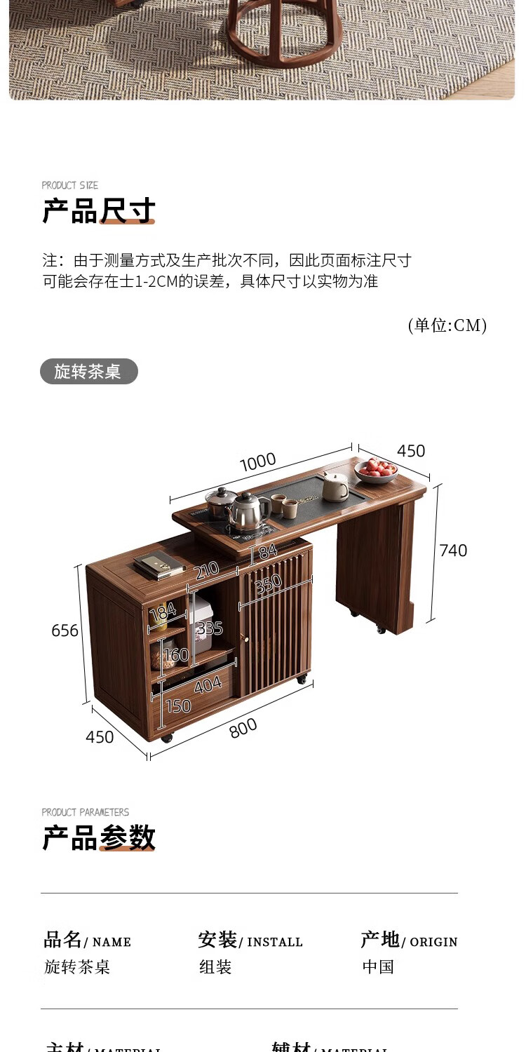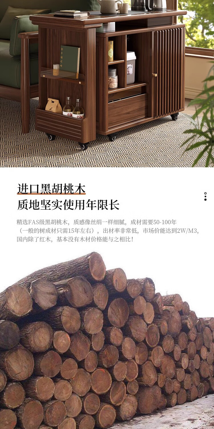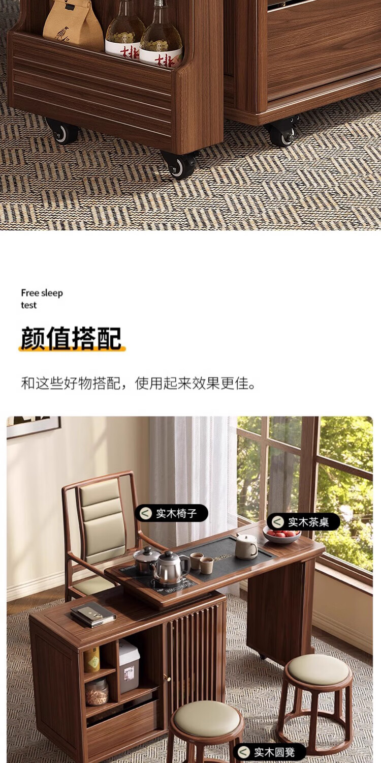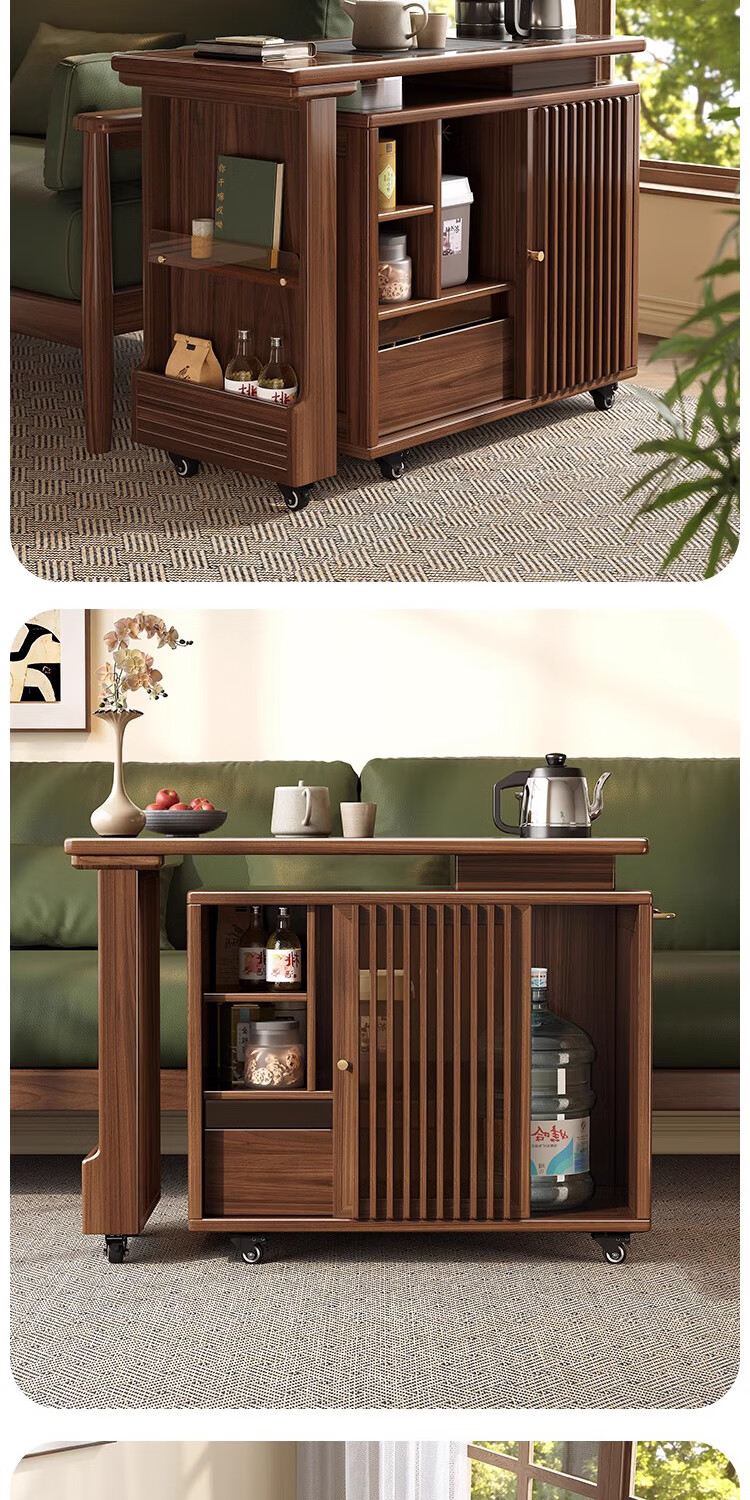 Geya wood language black walnut solid wood tea table integrated rotatable small tea table new Chinese style creative kung fu coffee table movable tea cabinet tea table