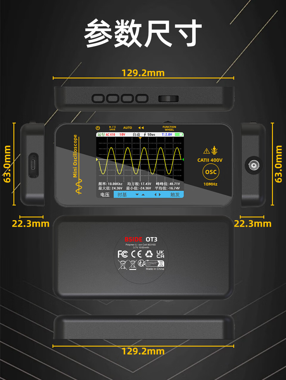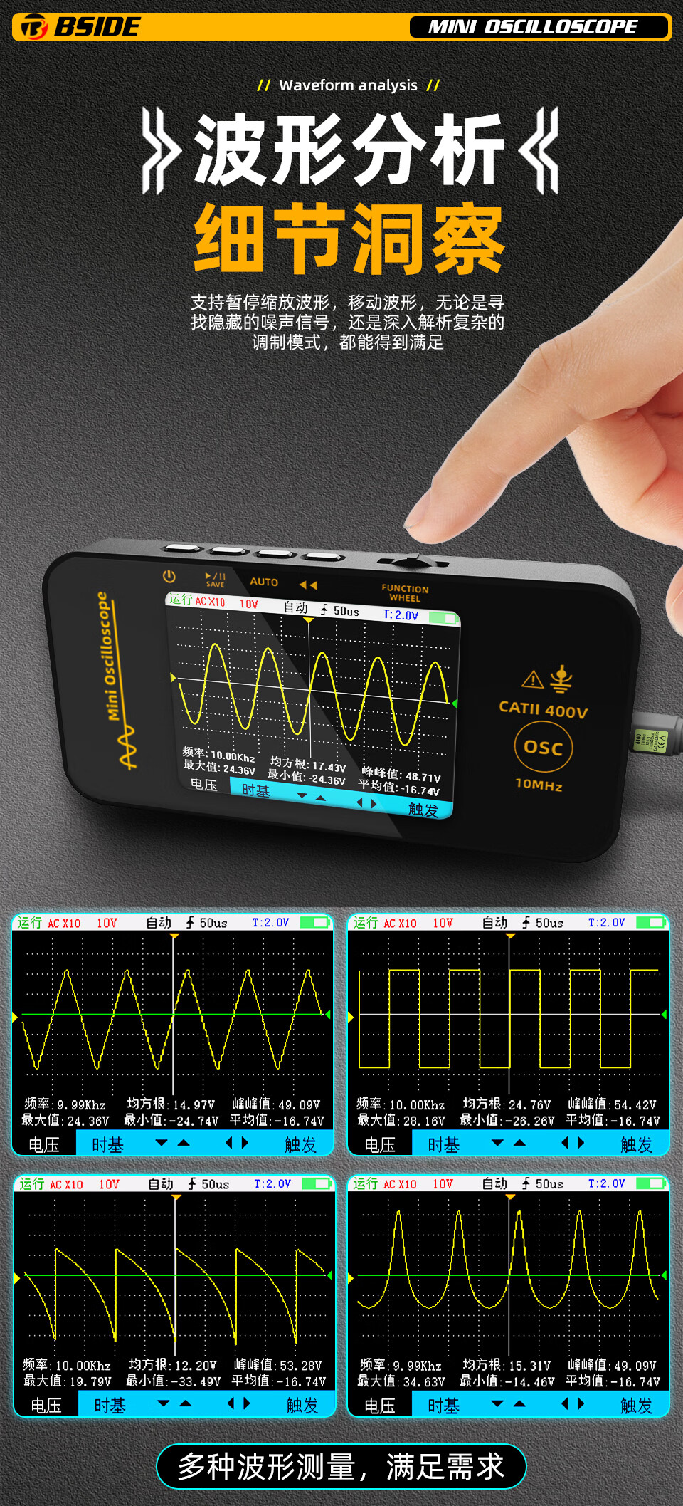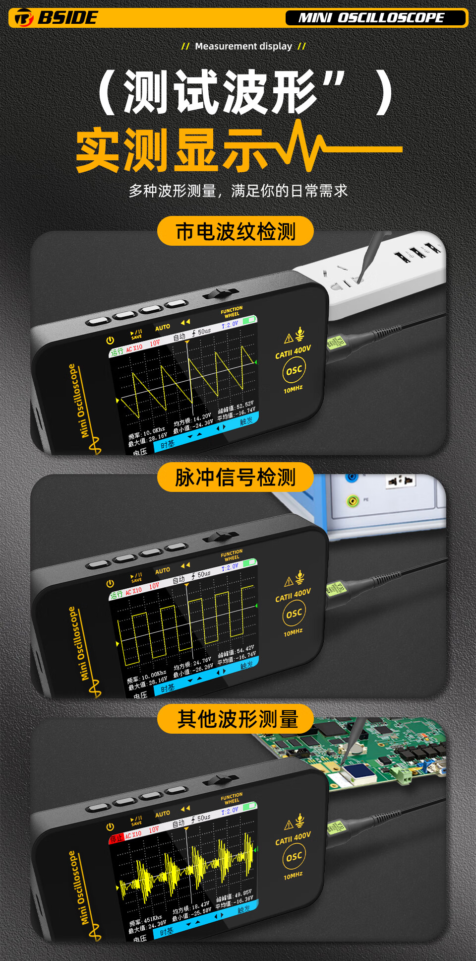 BSIDEOT3 small digital oscilloscope single channel 10MHz portable multi-functional electrician home maintenance and auto repair instrument