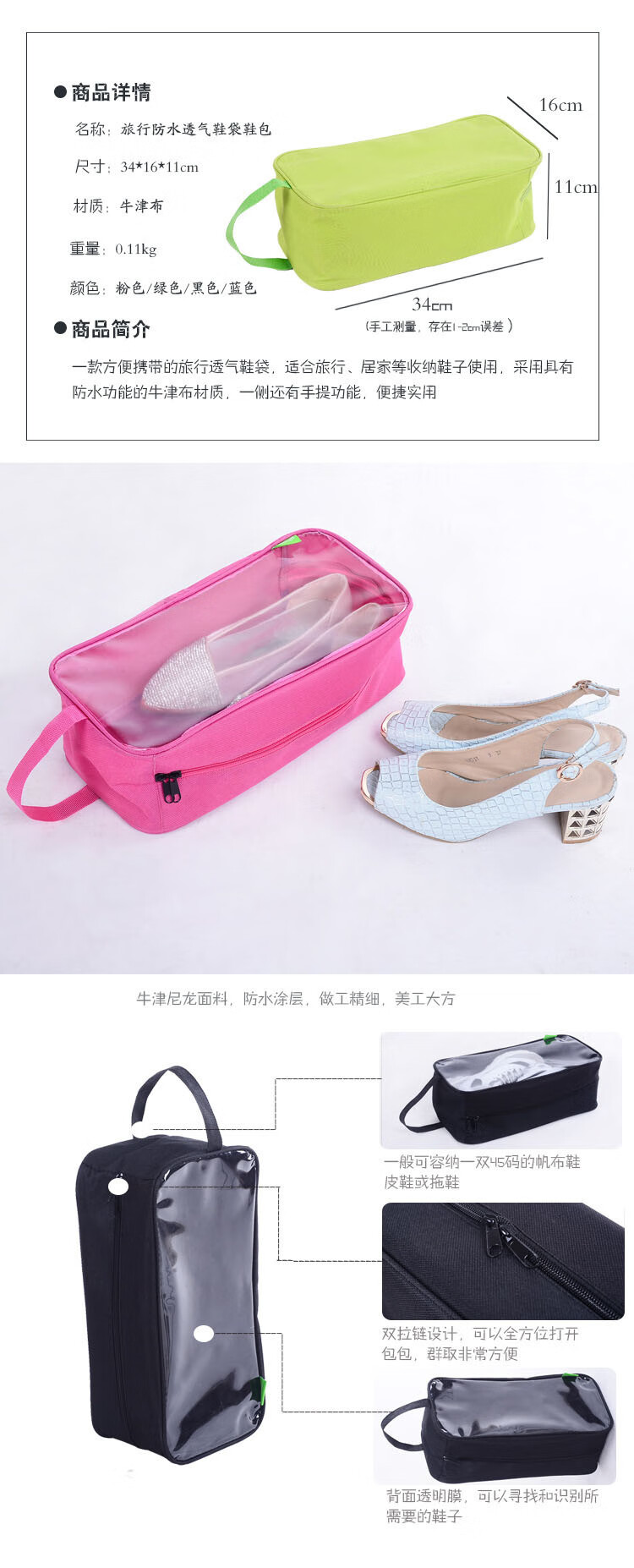 HengTravler transparent shoe box portable waterproof and dustproof portable shoe bag shoe bag home travel Oxford cloth shoe storage bag green