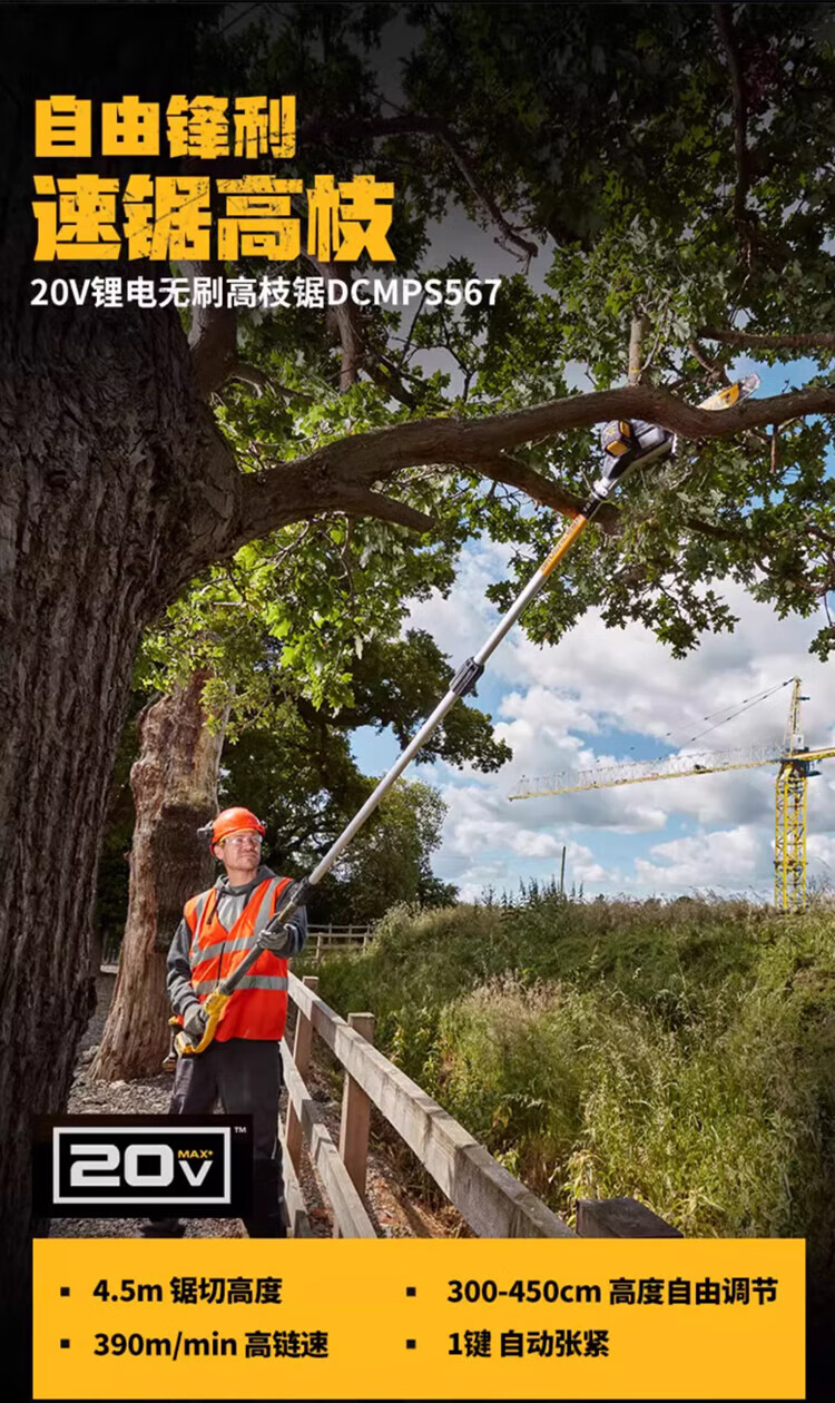 DEWALT 20V rechargeable electric chain saw DCMPS567 garden branch cutting high branch saw DCMPS567 bare metal
