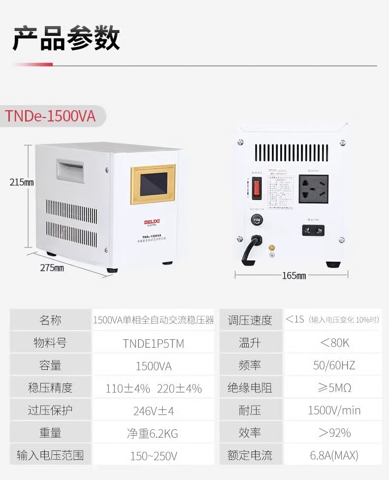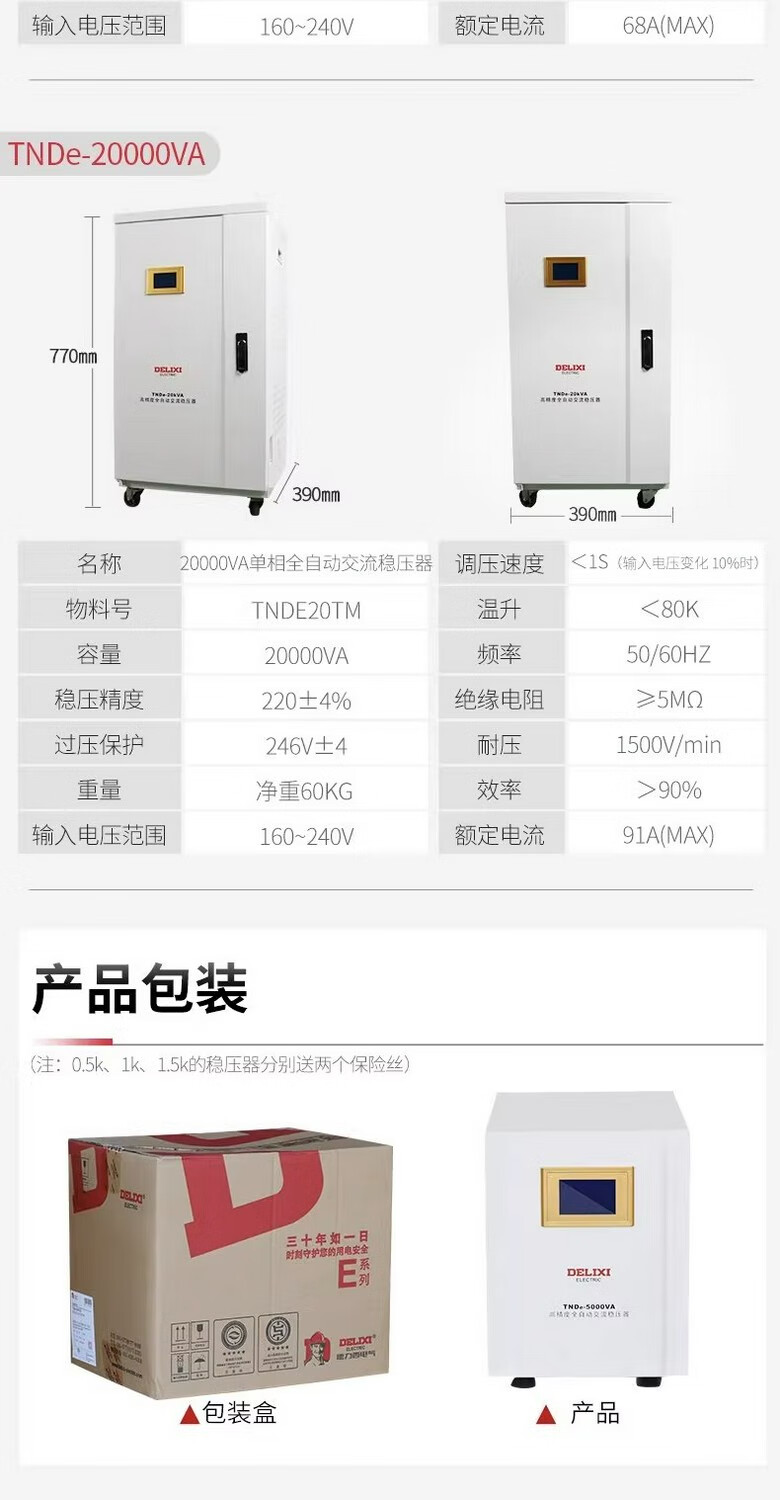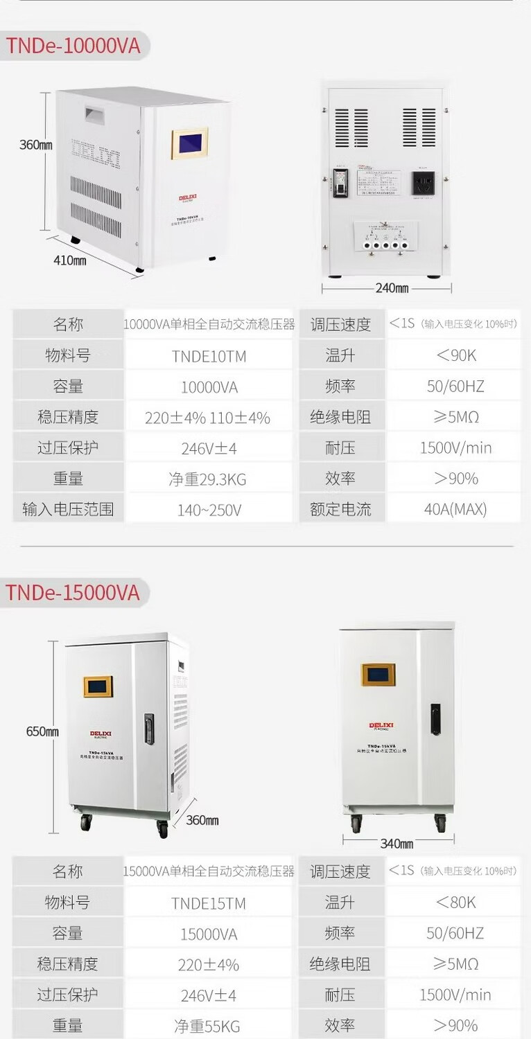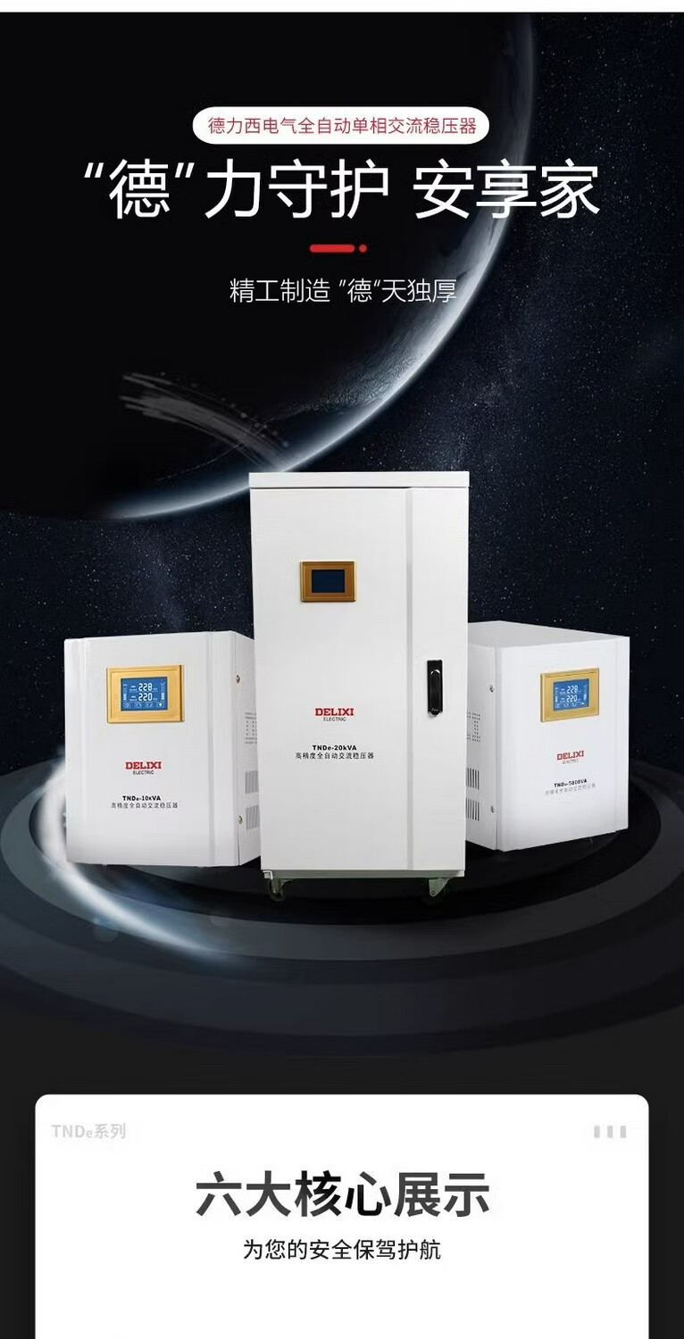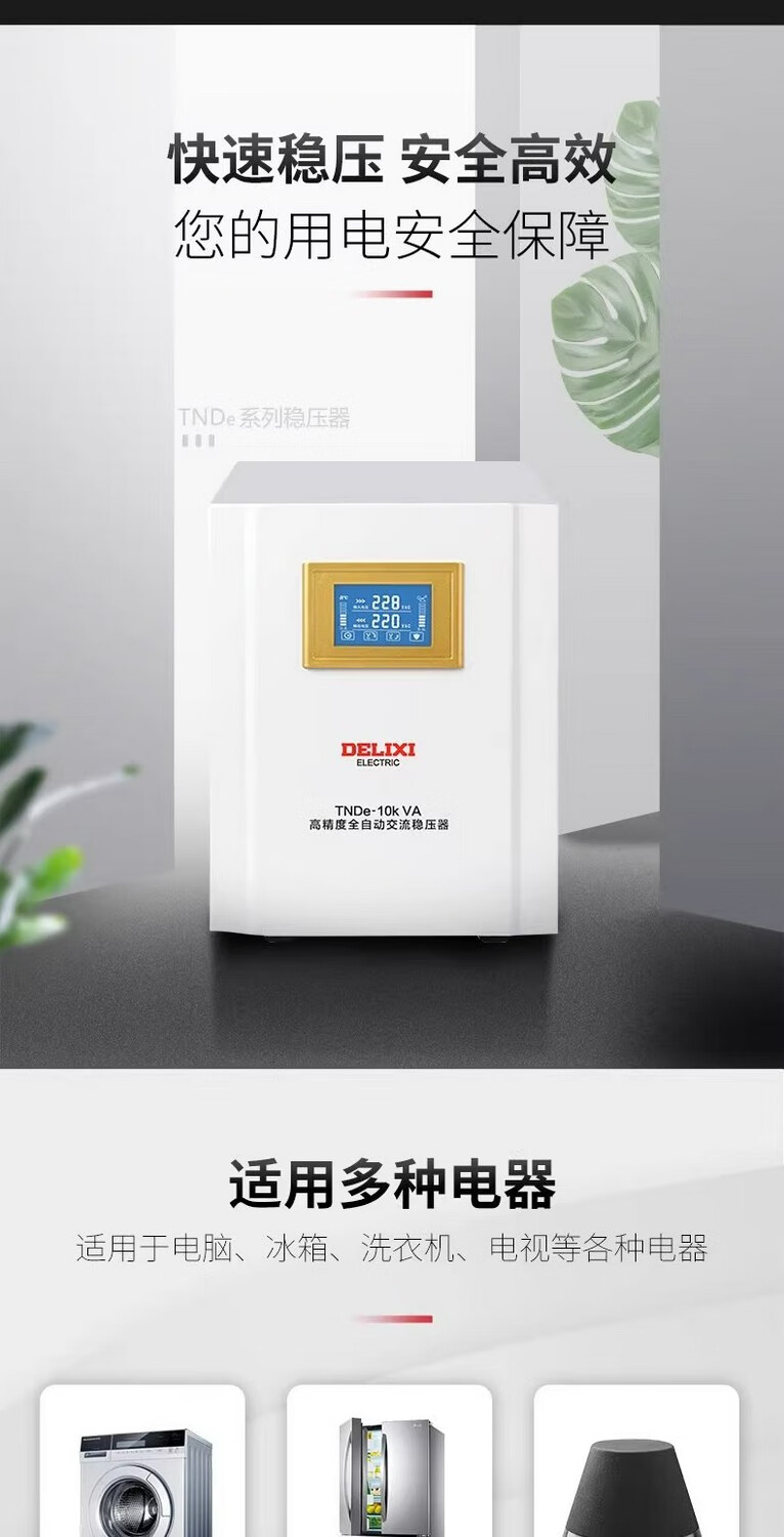 DELIXI ELECTRIC TNDE fully automatic lightning protection single-phase 220V voltage regulator LCD display AC power voltage regulator stabilizer TNDe 10KW TNDE10TM