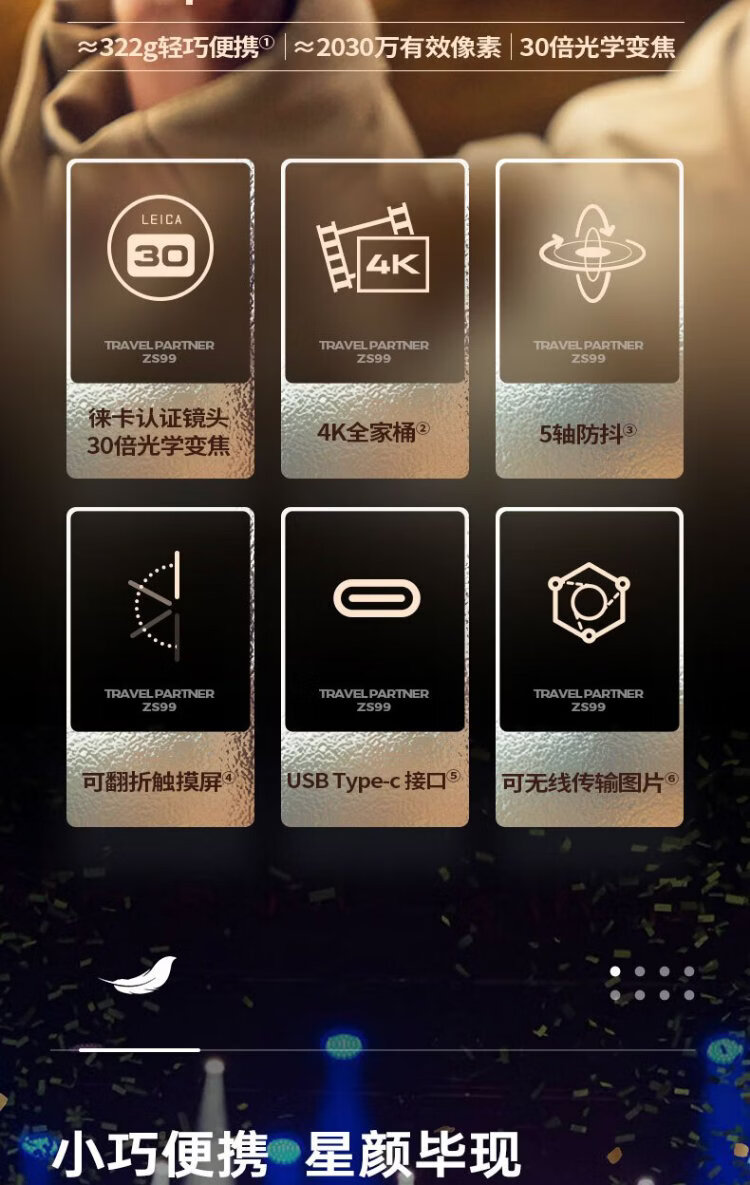 Panasonic ZS99 card camera digital camera telephoto portable pocket camera for concert/travel for students entry-level 20.3 million pixels 5-axis anti-shake USB charging ZS99 silver