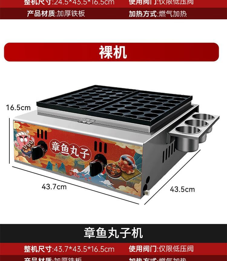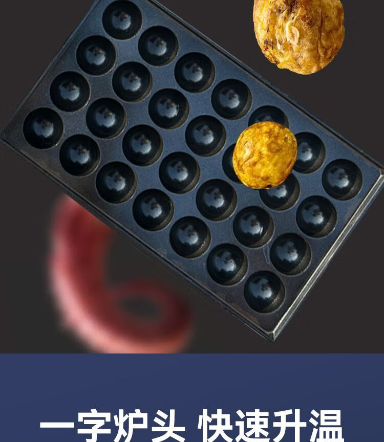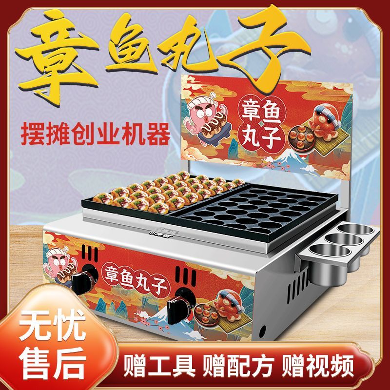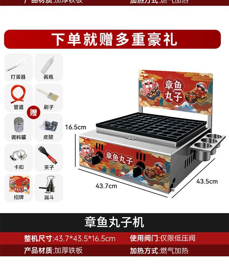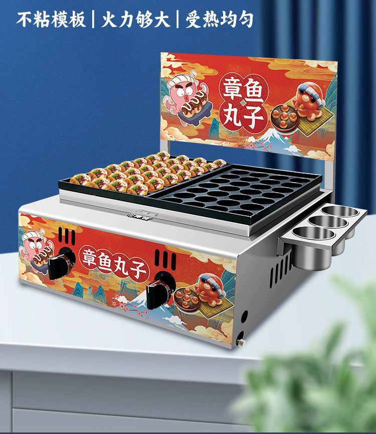 Haochukjing internet celebrity Octopus Maruko Night Market gas stall electric heating single and double grilled meatball plate shrimp and egg octopus grill machine commercial gas 56 holes - plus 8-piece set + leakage + billboard nanocrystalline ceramic baking plate