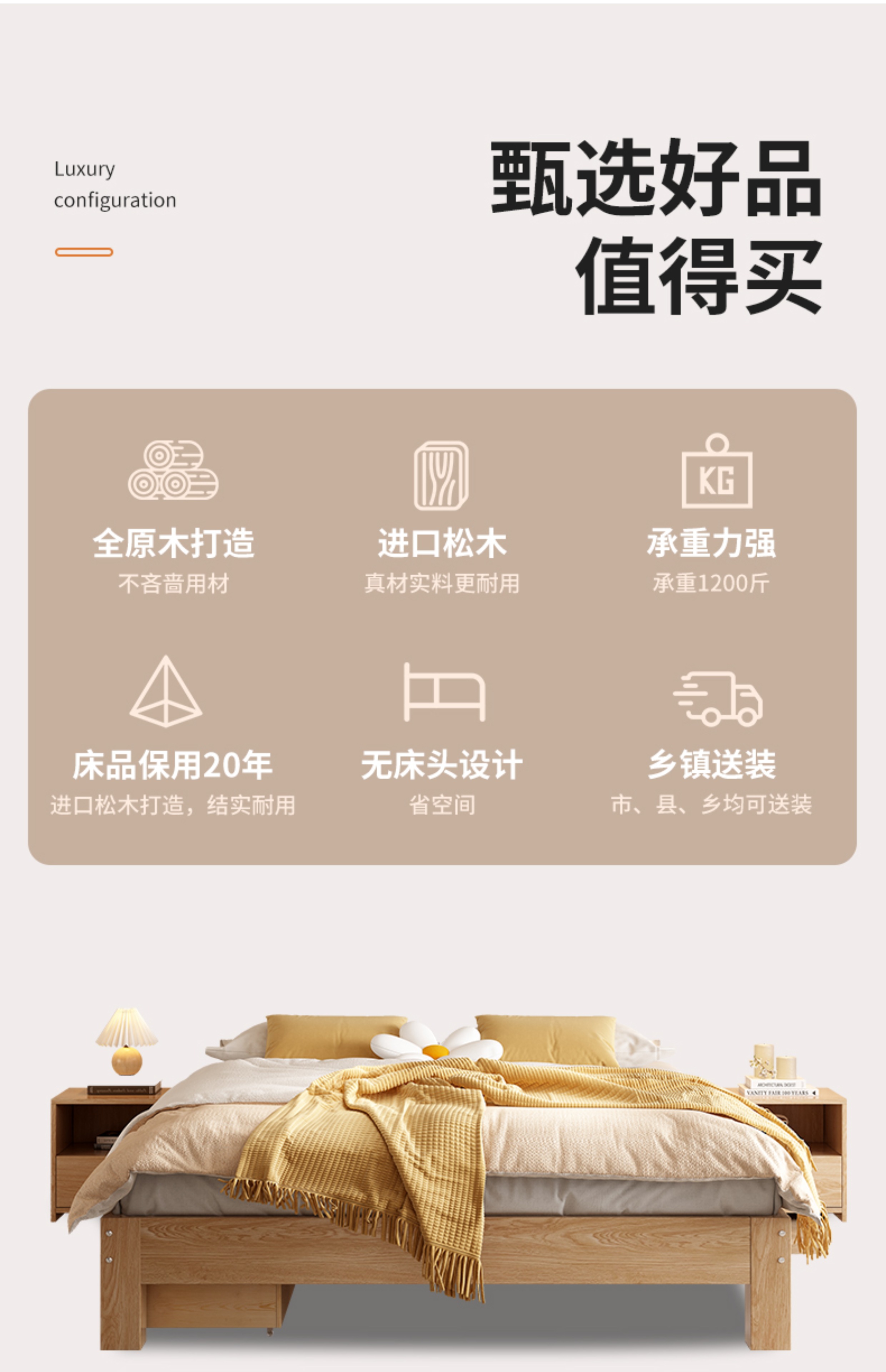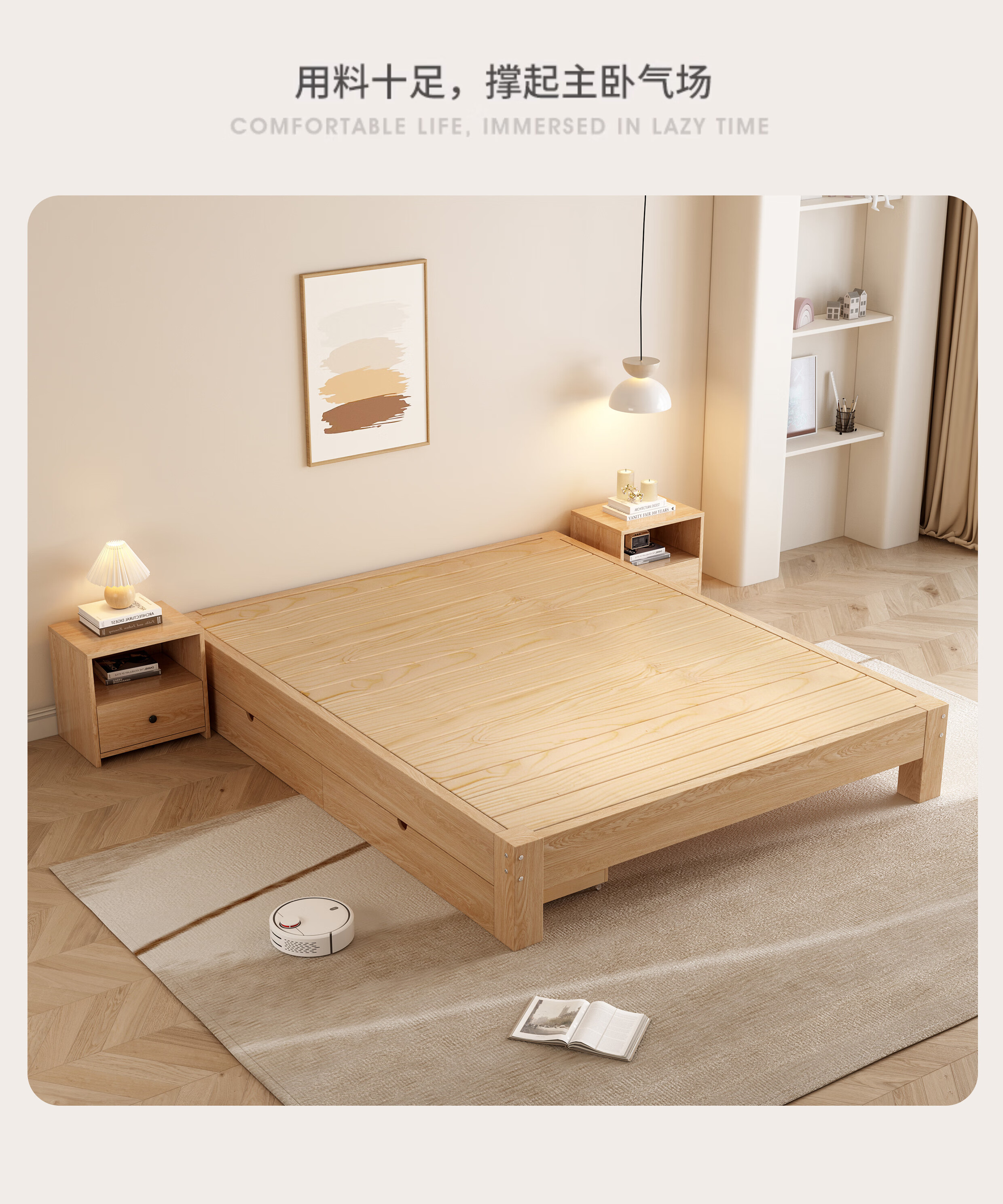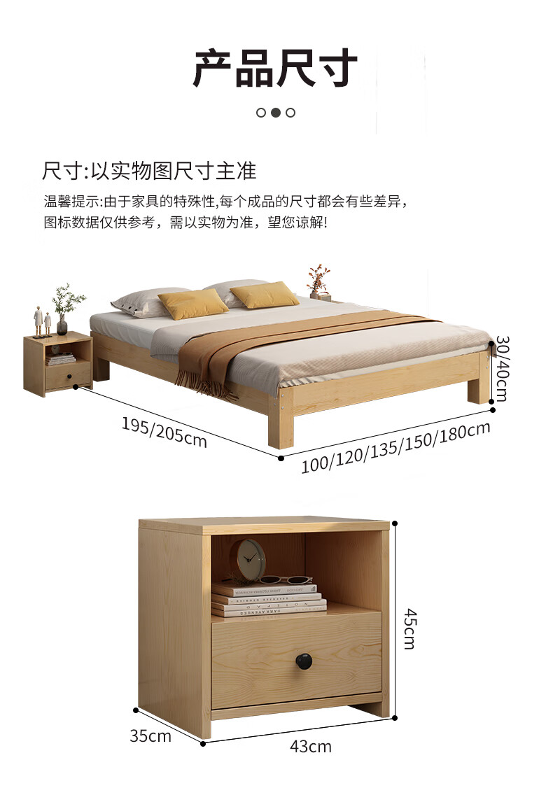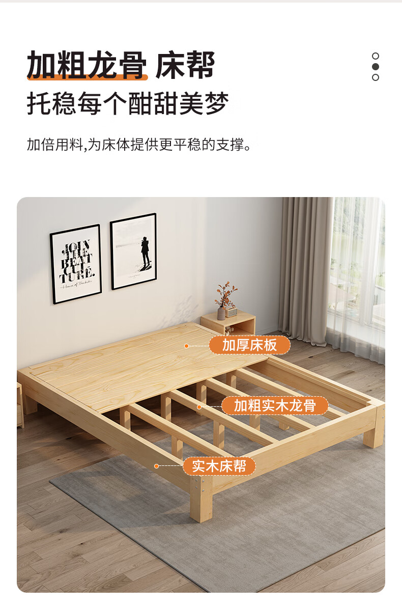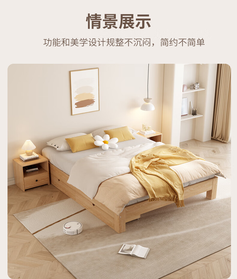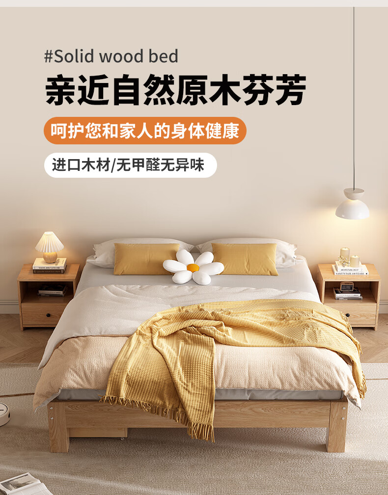 Yinghuan tatami solid wood bed without bedside 1.5 meters simple pine double bed 1.8 rental bed 1.2 meters factory direct sales natural pine model solid wood bed 30 high 1 meter wide 1.9 meters long