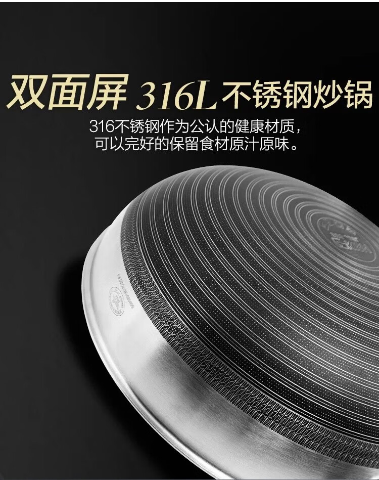 KOBACH KOBACH fourth-generation non-stick German 316L stainless steel double-sided household wok induction cooker gas universal German double-sided 32cm wok cdx32a1