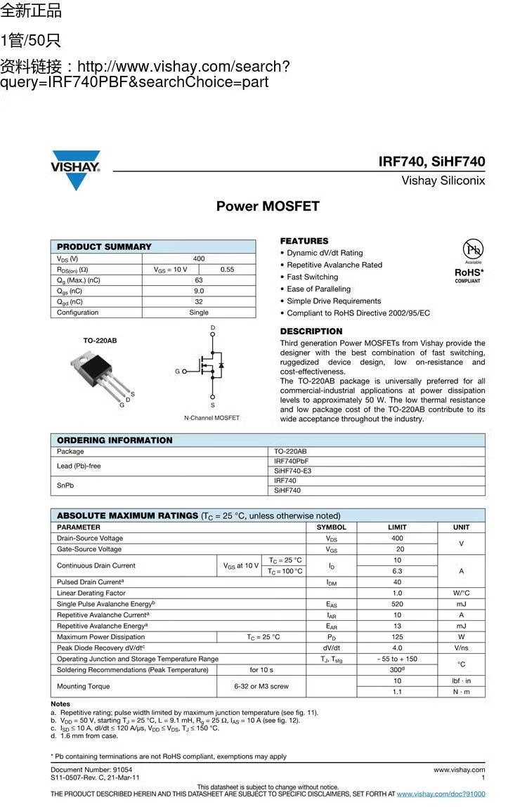 IRF740/1312/1404/1405/1407/2805/3205/IRFB3207 MOS tube IRF2805 new original