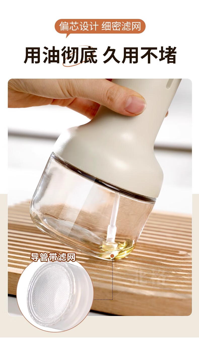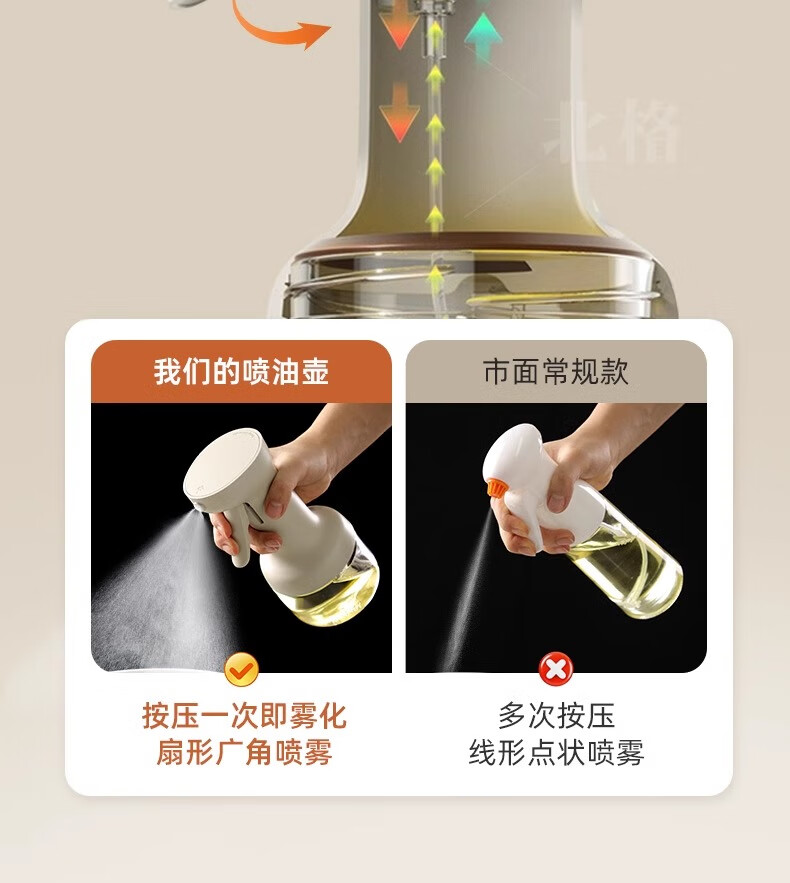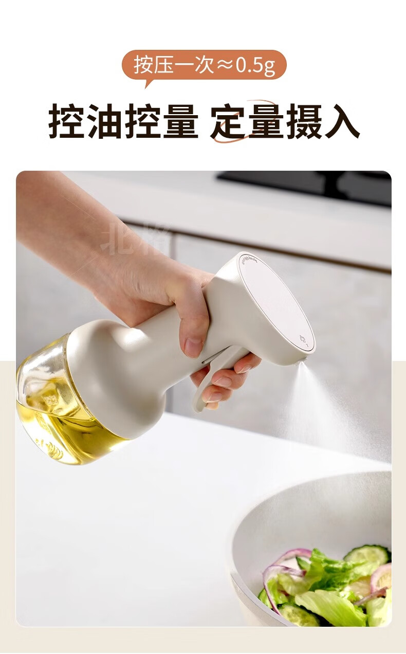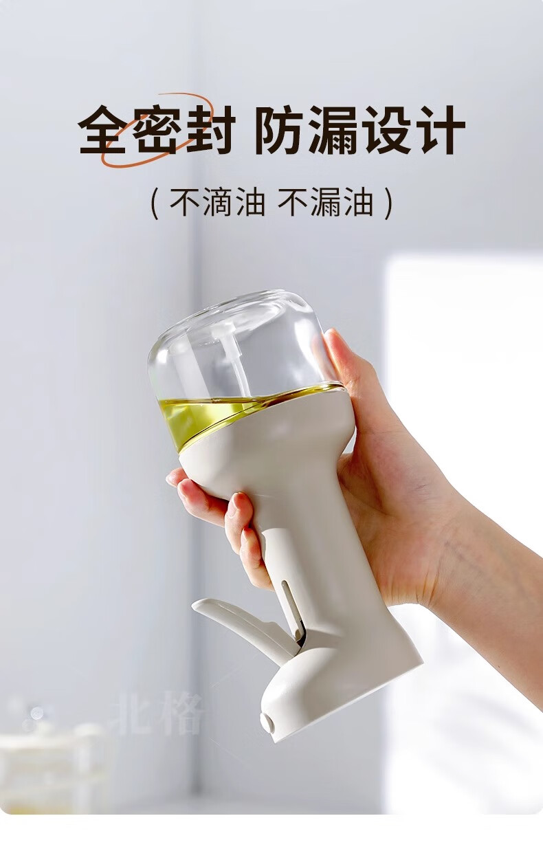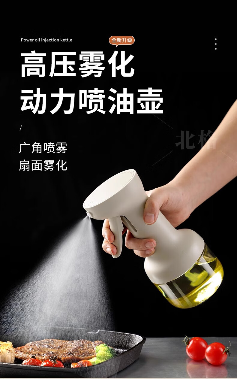 Beige atomized oil spray bottle kitchen oil bottle household glass oil tank without oil leakage food grade oil spray bottle large capacity elegant white small high pressure atomized power oil spray bottle