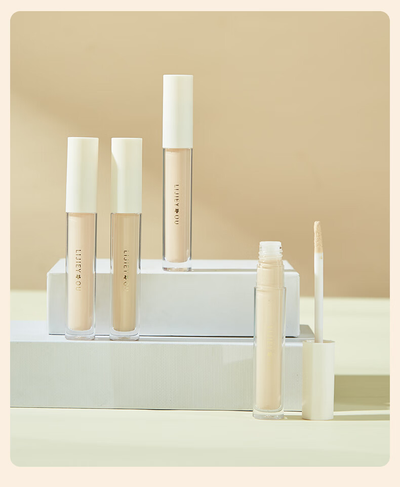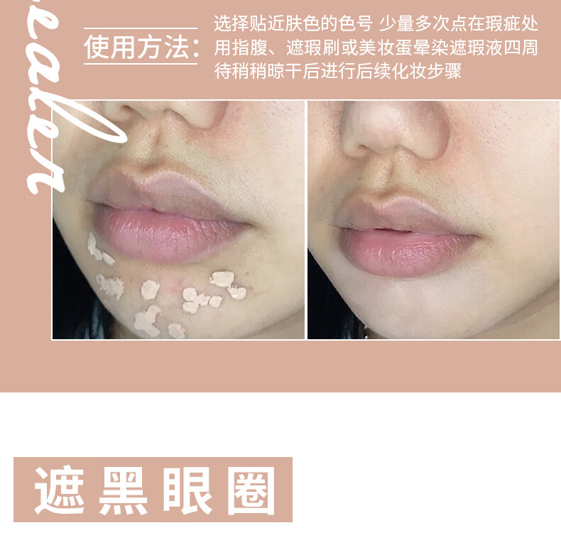 Traceless concealer cream covers tear troughs, spots, acne marks, dark circles, freckles, lips, face, student makeup, invisible pores 02# natural color, two packs + powder puff