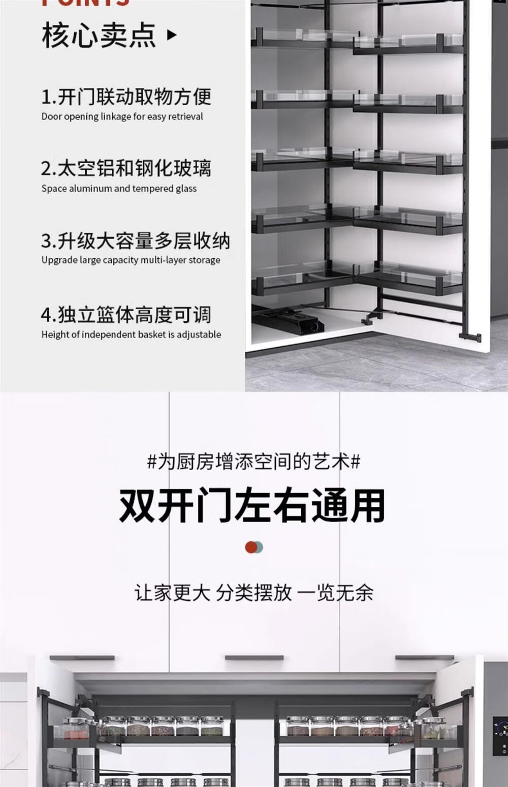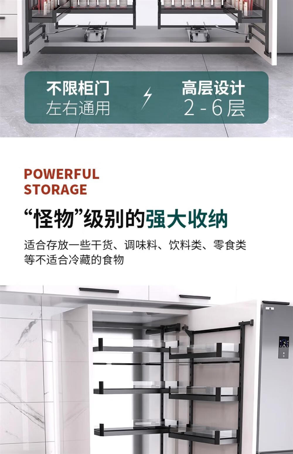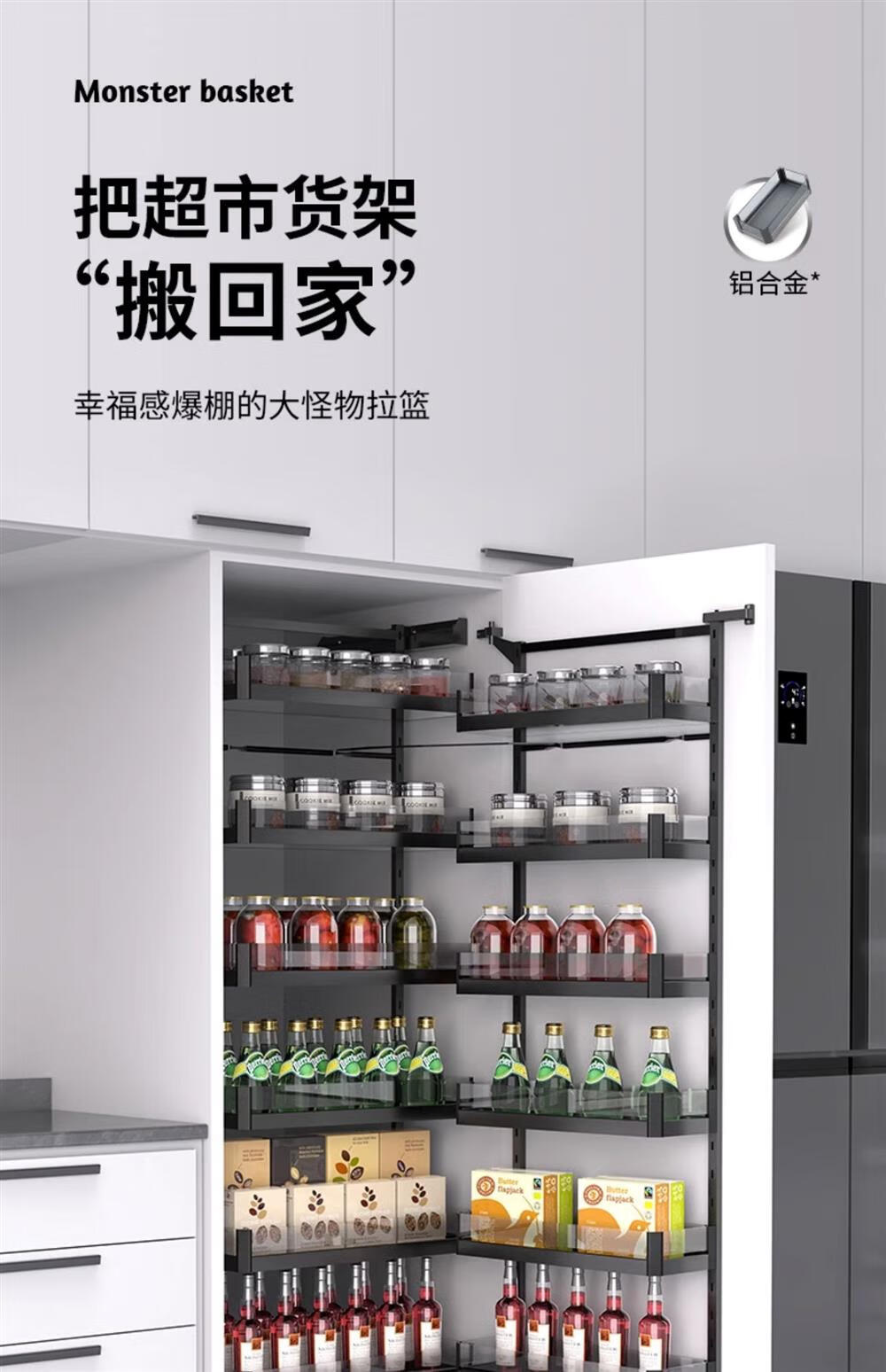 Ling Yuxun promotion high cabinet pull basket kitchen cabinet big monster high deep pull basket shallow cabinet linked multi-layer storage snack cabinet 50 depth 500 cabinet 2-layer black crystal high cabinet multi-layer door type