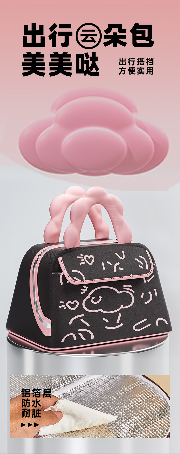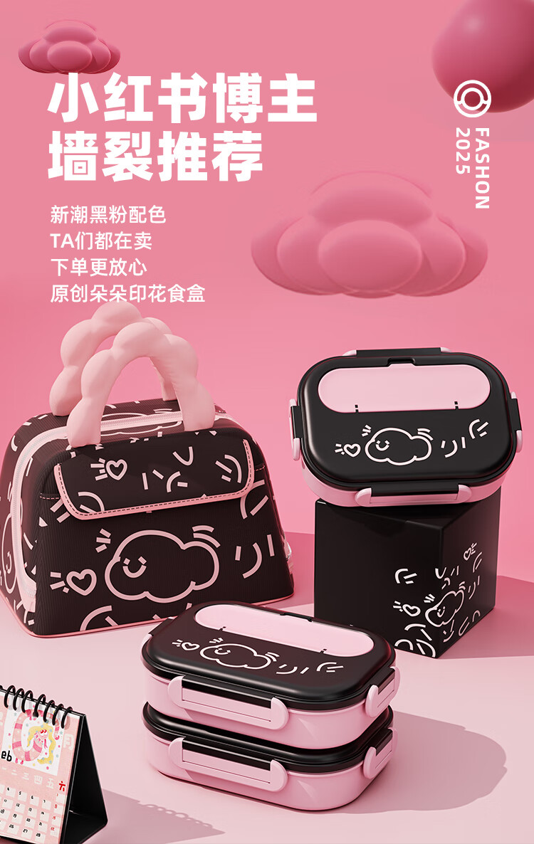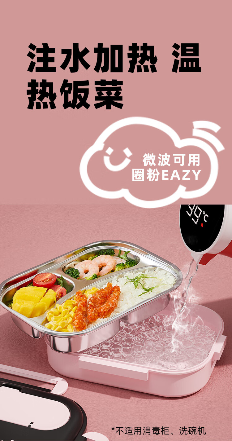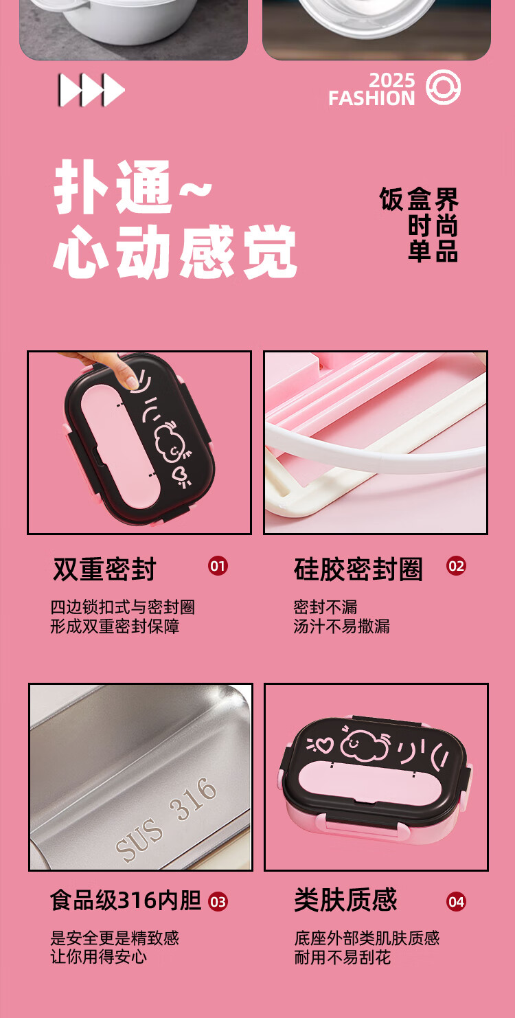 Benying 316 stainless steel insulated lunch box for students going to school, special lunch box for girls and children, lunch box for office workers with tray separation, free insulation bag, cloud powder four-partition 1600ml, medical grade 316 material (antibacterial rate 99%)