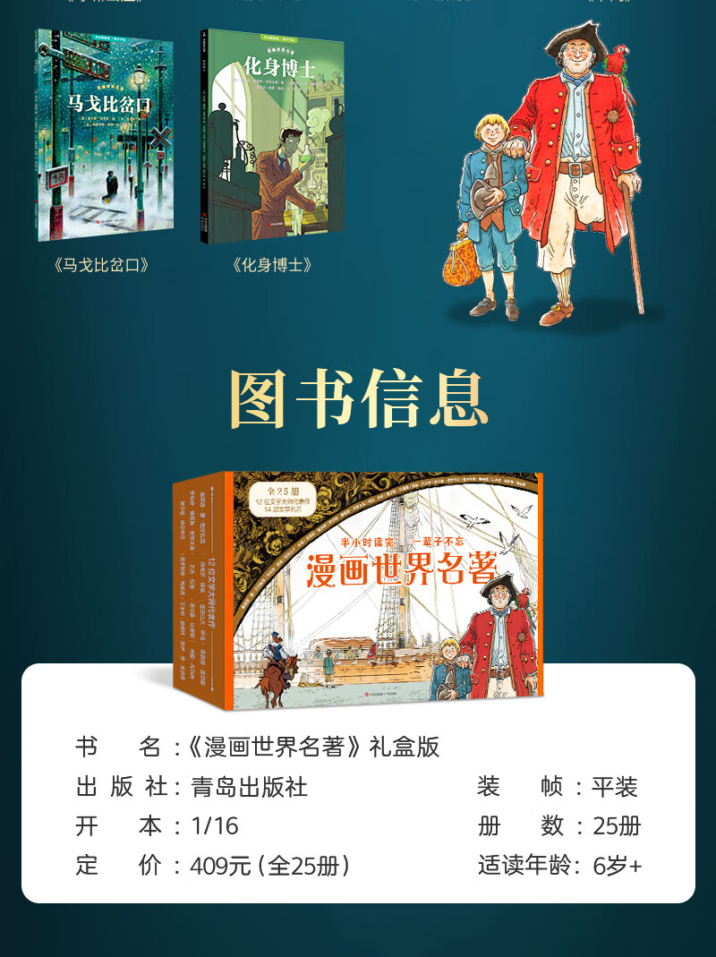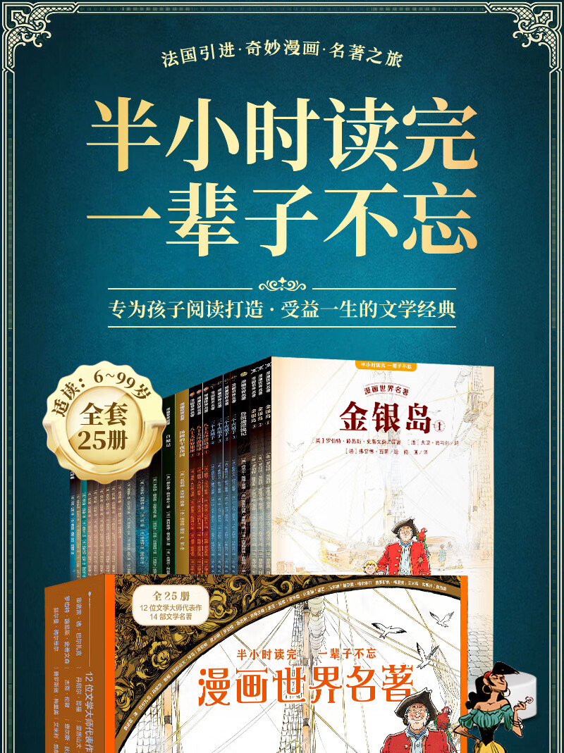 Fan Deng recommends the comic book world classics color illustrated version for primary school students extracurricular reading books Around the World in Eighty Days Treasure Island Robinson Crusoe The Call of the Wild Wuthering Heights Oliver Twist comic book version of world classics reading primary school students in grades 2, 3, 4 and 5 summer reading children's gifts New Year's gift Comic book world masterpiece set 25 volumes Selection gift box