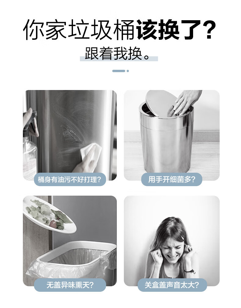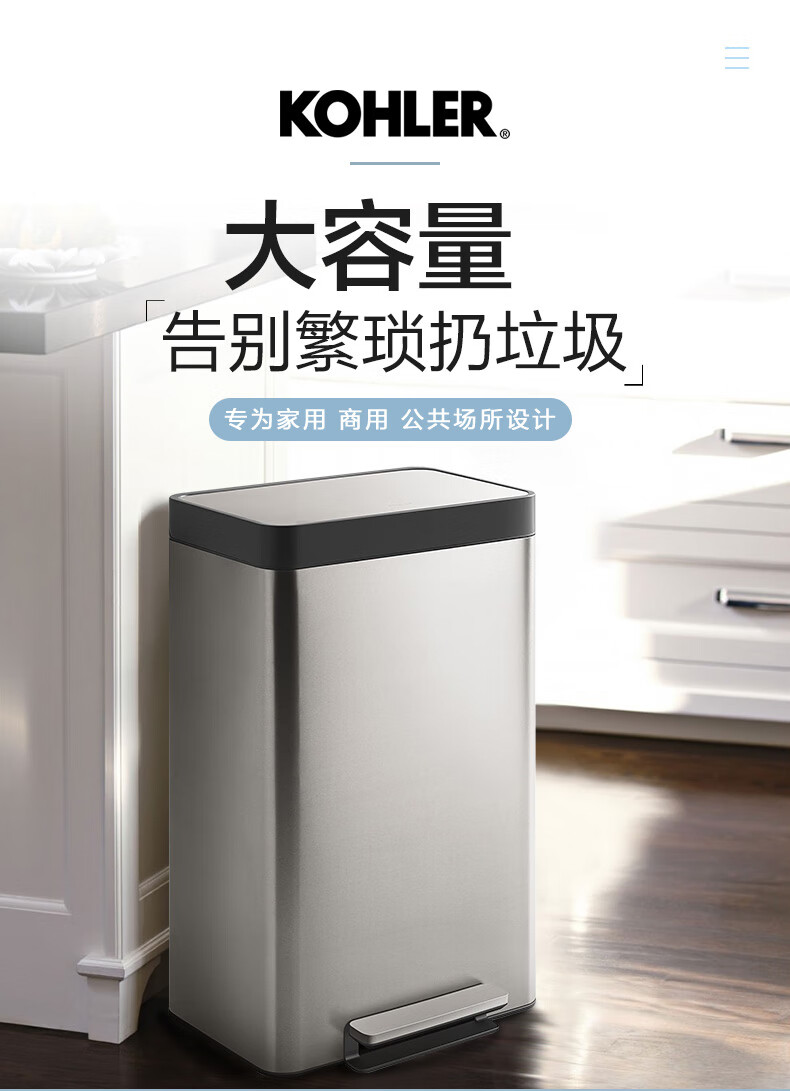 Kohler kitchen trash can for home use 2024 new large capacity living room high value stainless steel commercial office versatile simple sand steel color 0 47L