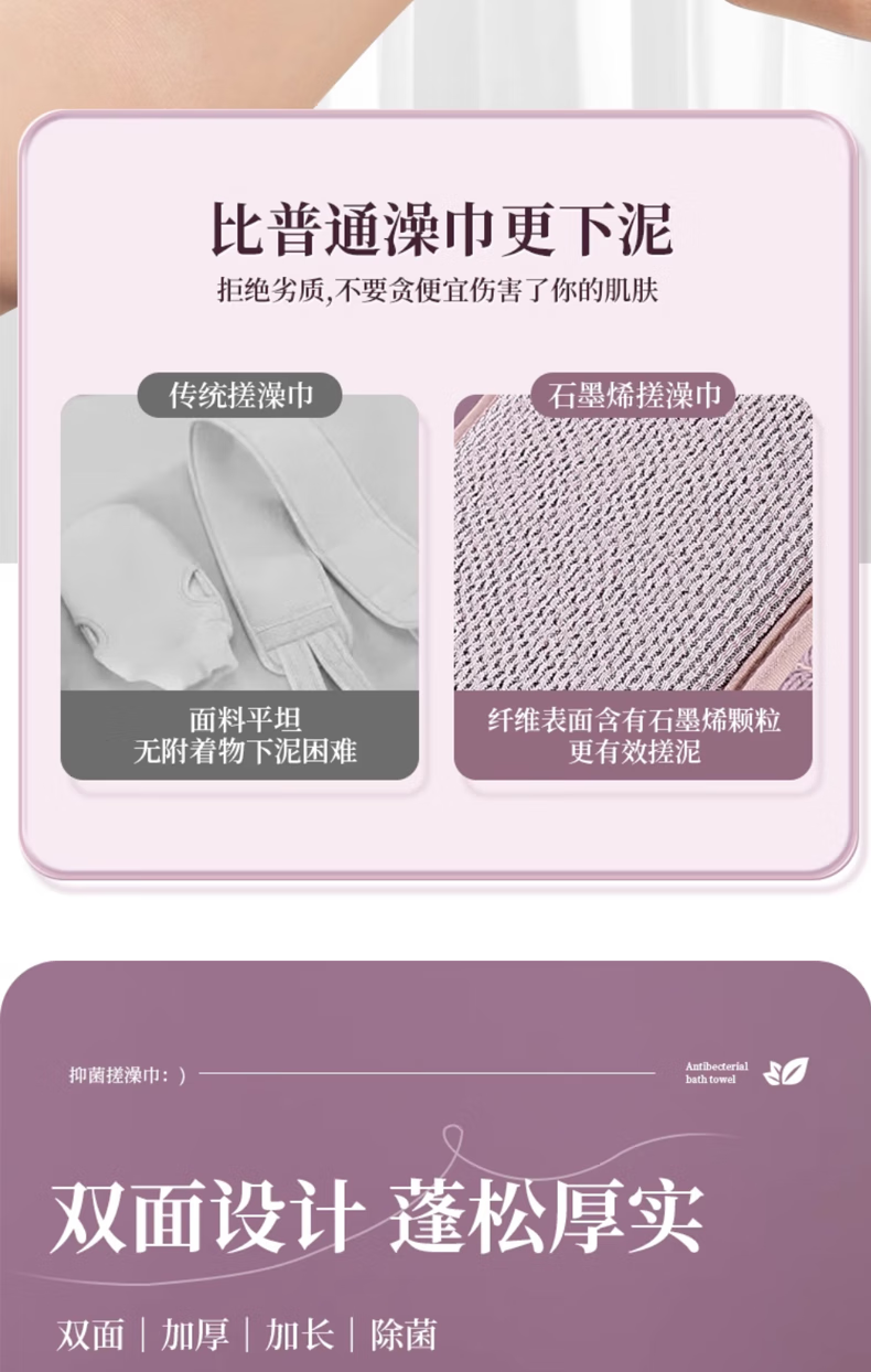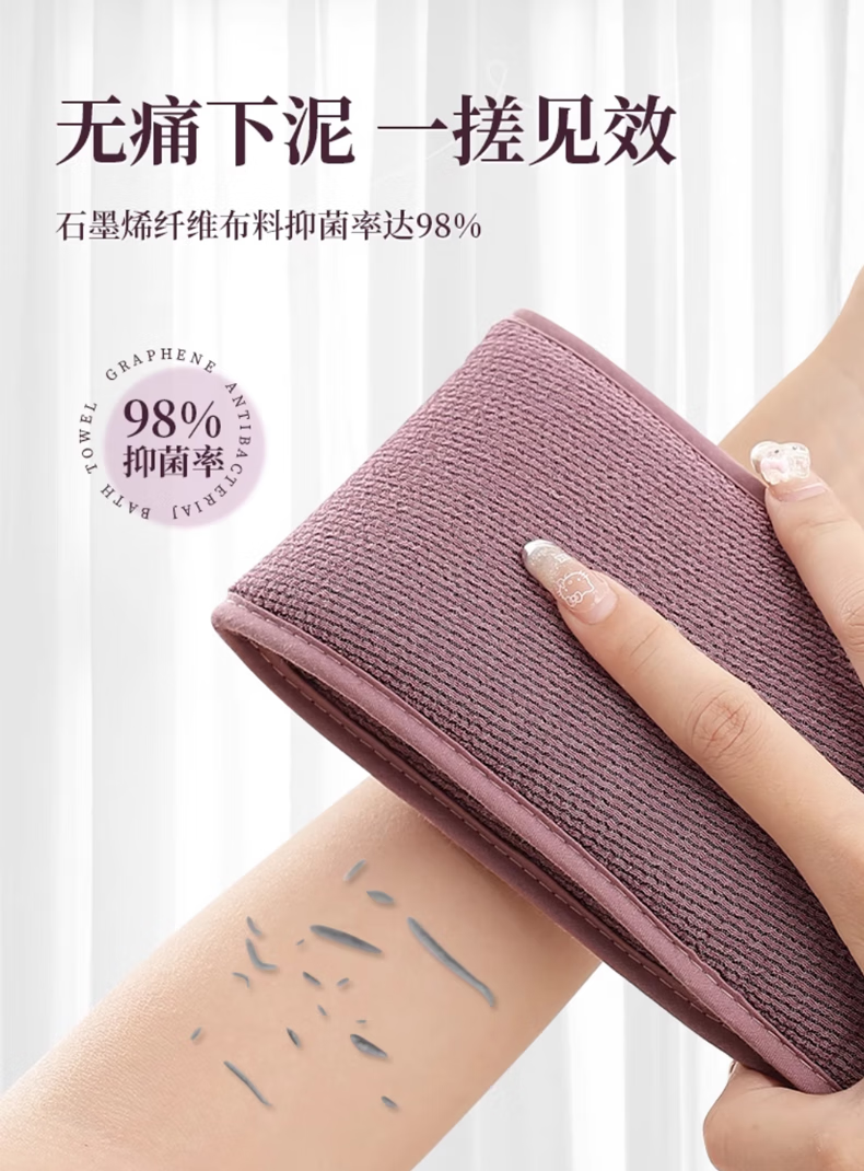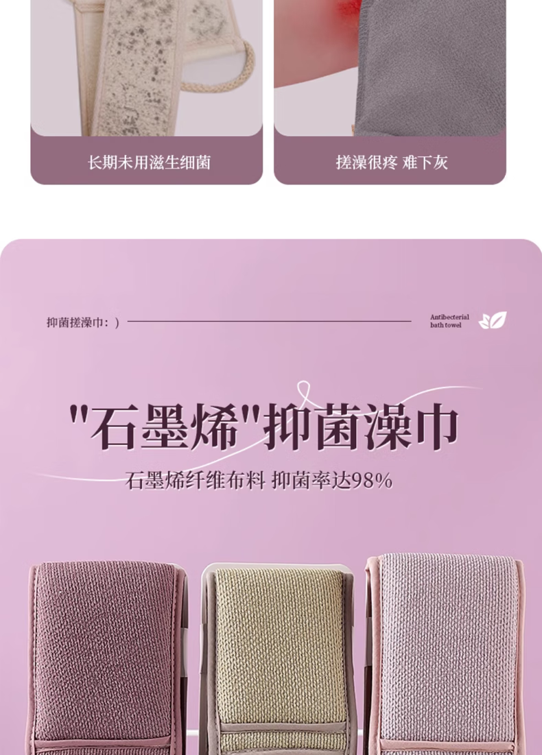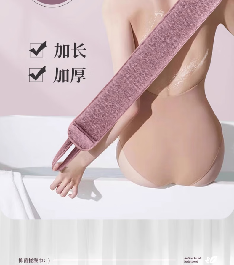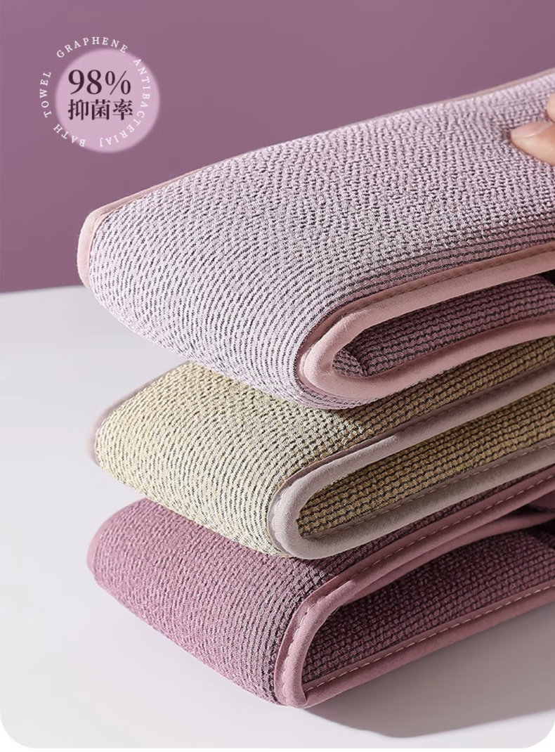 Aristocratic family bath towel with back strip, double-sided back rub for men and women, powerful bath towel artifact for back rub, decontamination and mud rub, long strip, graphene-dark purple