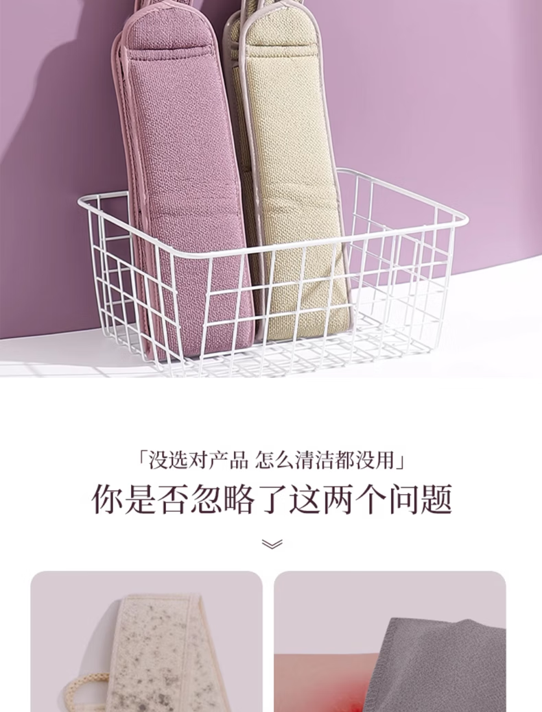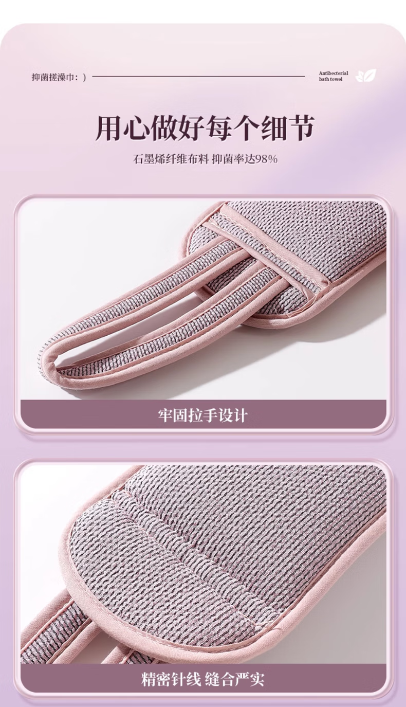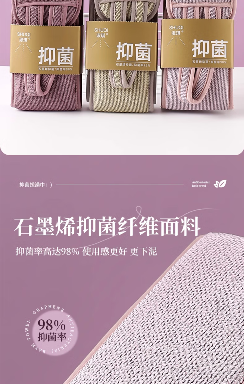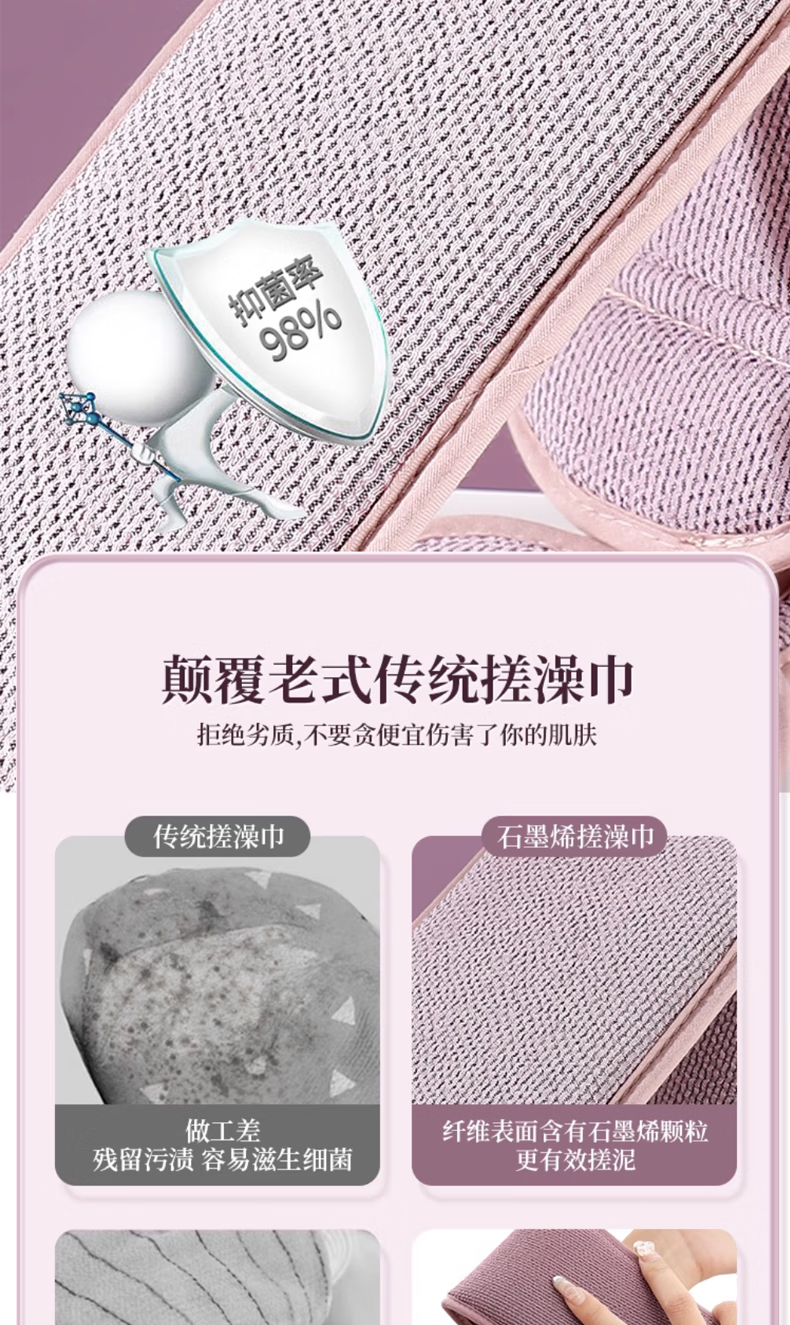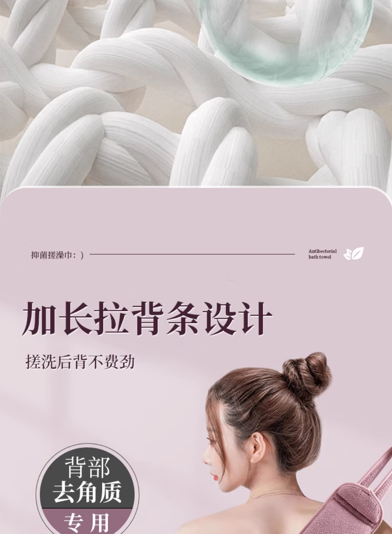 Aristocratic family bath towel with back strip, double-sided back rub for men and women, powerful bath towel artifact for back rub, decontamination and mud rub, long strip, graphene-dark purple