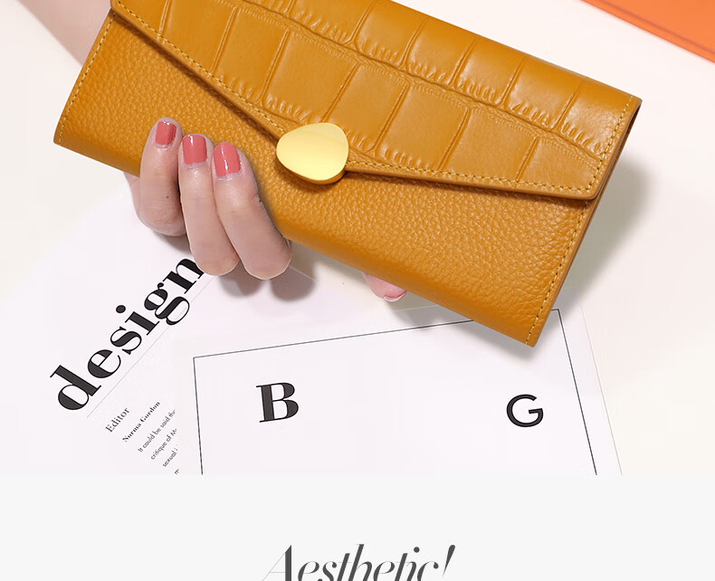 Woodpecker (TUCANO) Yellow Lucky Large Capacity Genuine Leather Wallet for Women 2026 New Soft Cowhide Crocodile Pattern Hand Wallet for Mobile Phone Bag Rich Yellow