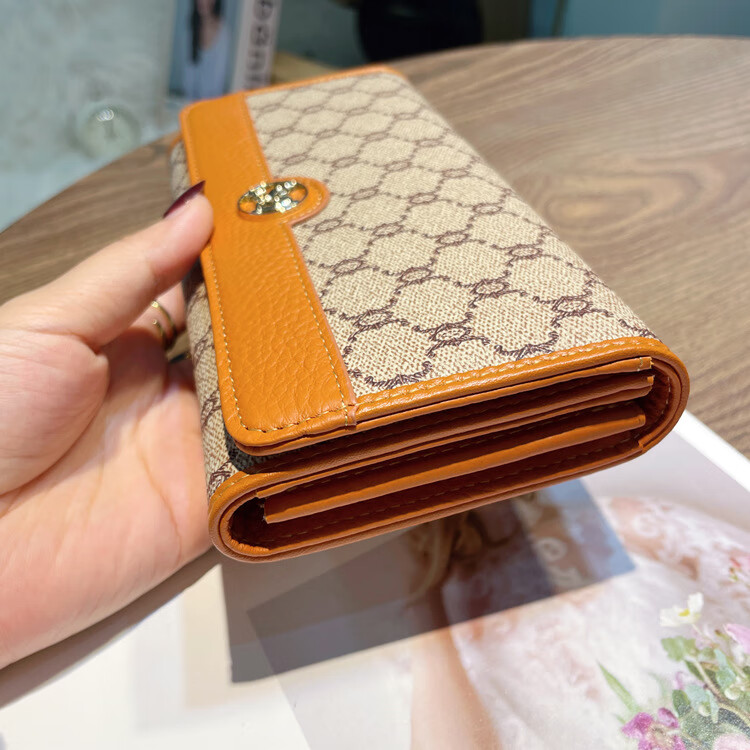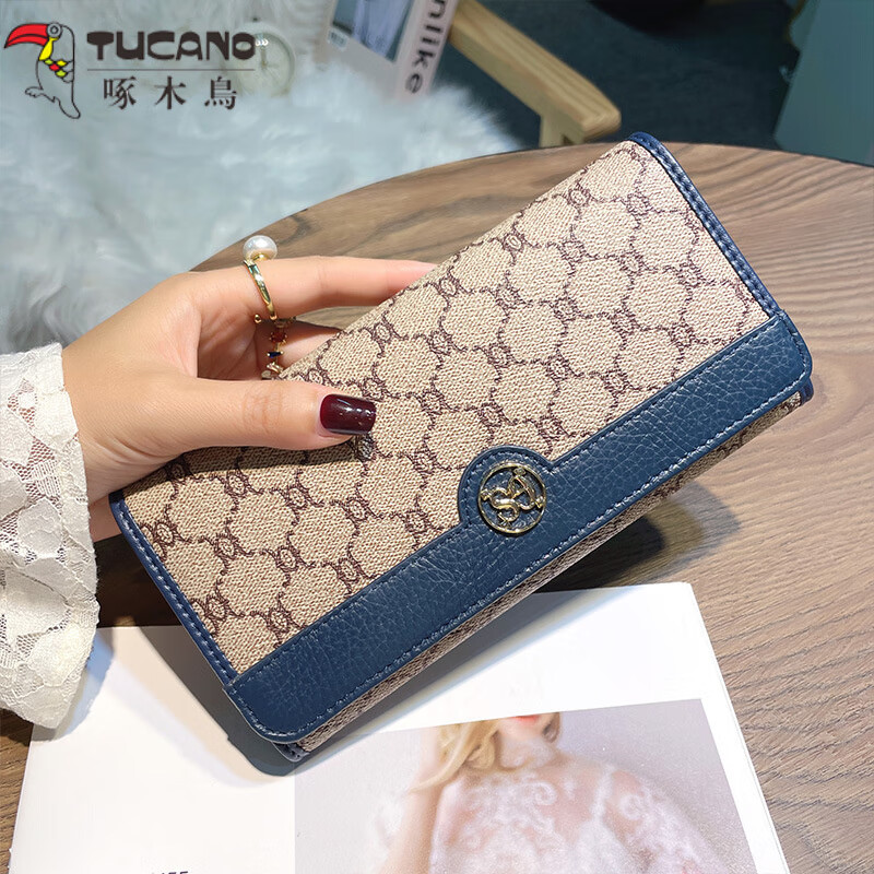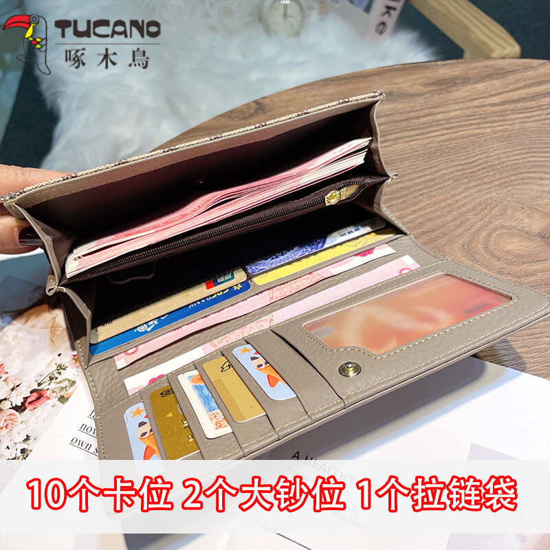 Woodpecker (TUCANO) pure cowhide long wallet for women, fashionable and versatile, genuine leather hand wallet, large capacity for mobile phone, thin wallet, apricot color