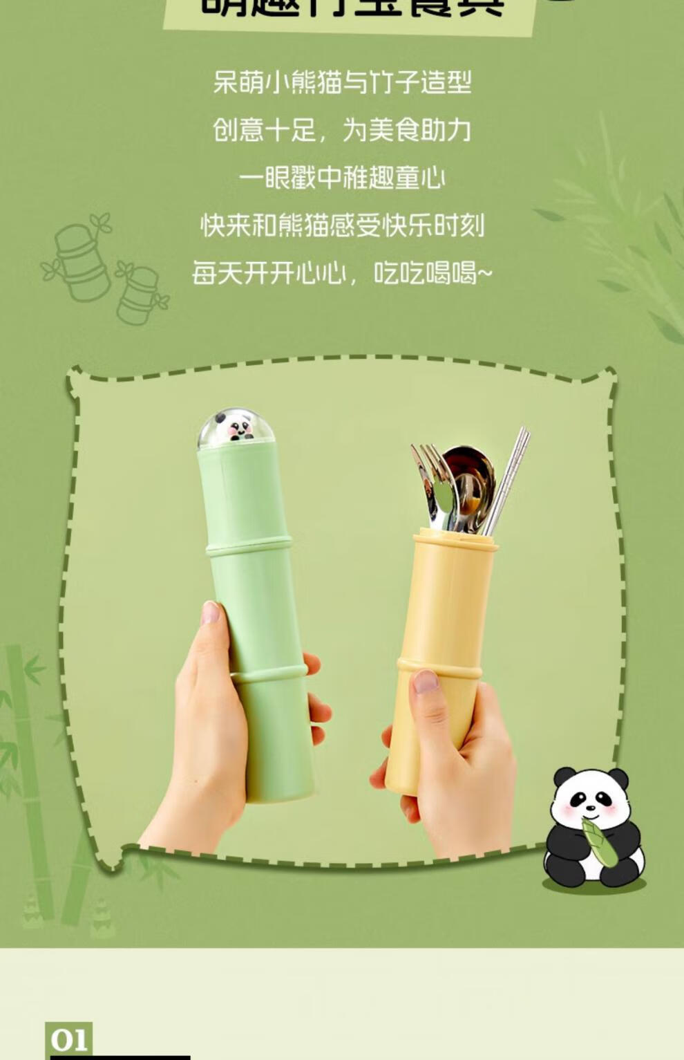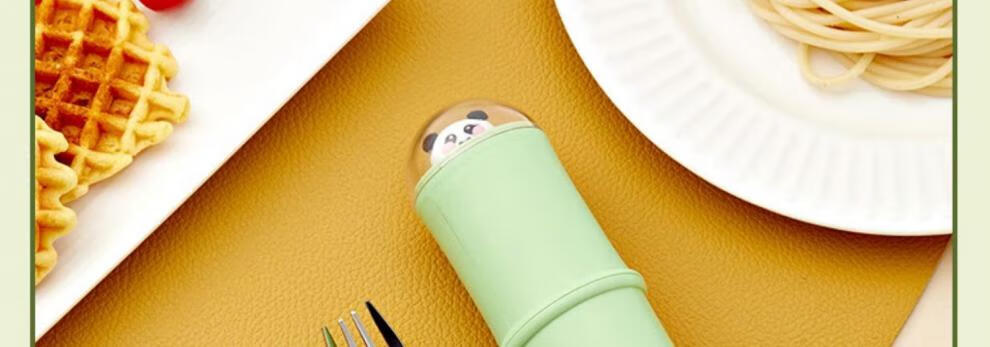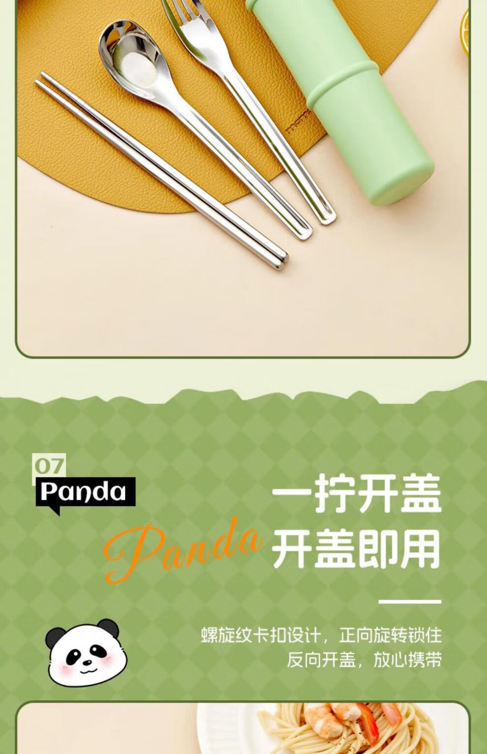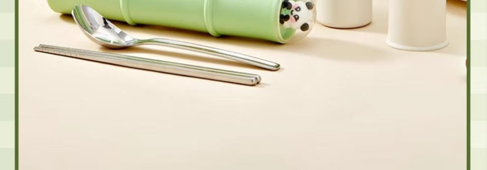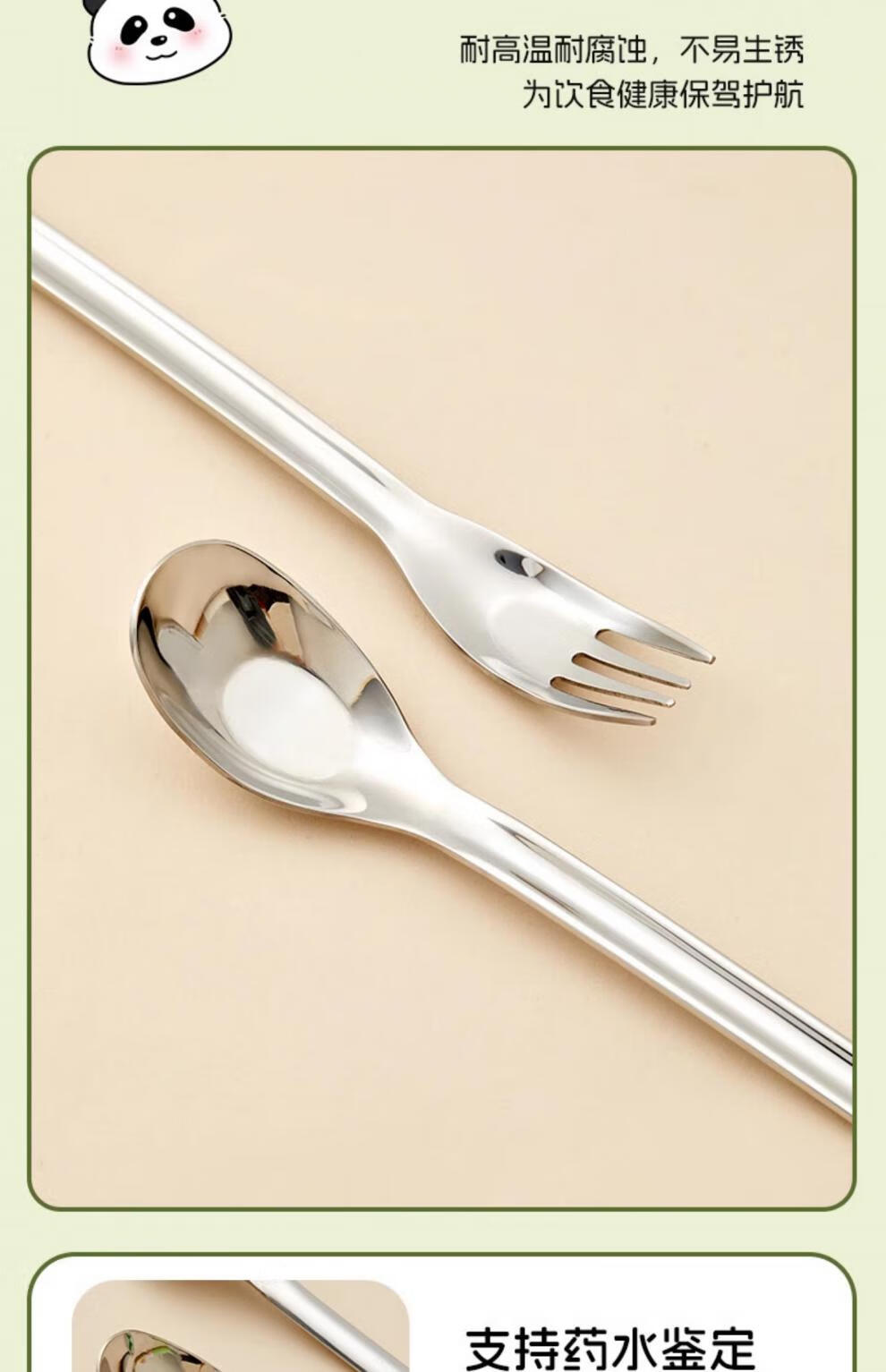 Chuangjingyi Selects Chopsticks and Spoon Sets for One Person Portable Tableware Three-piece Set Stainless Steel Working Children's Takeaway Storage Box Students Green-Four-Piece Set