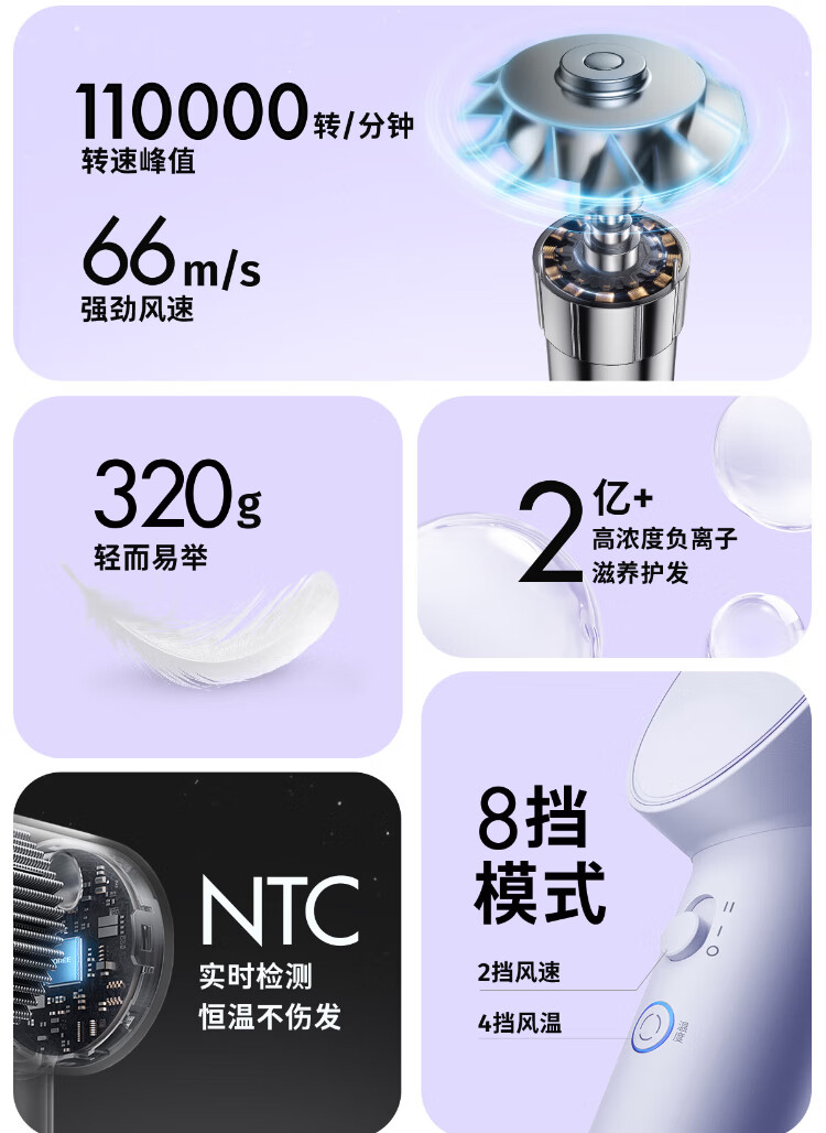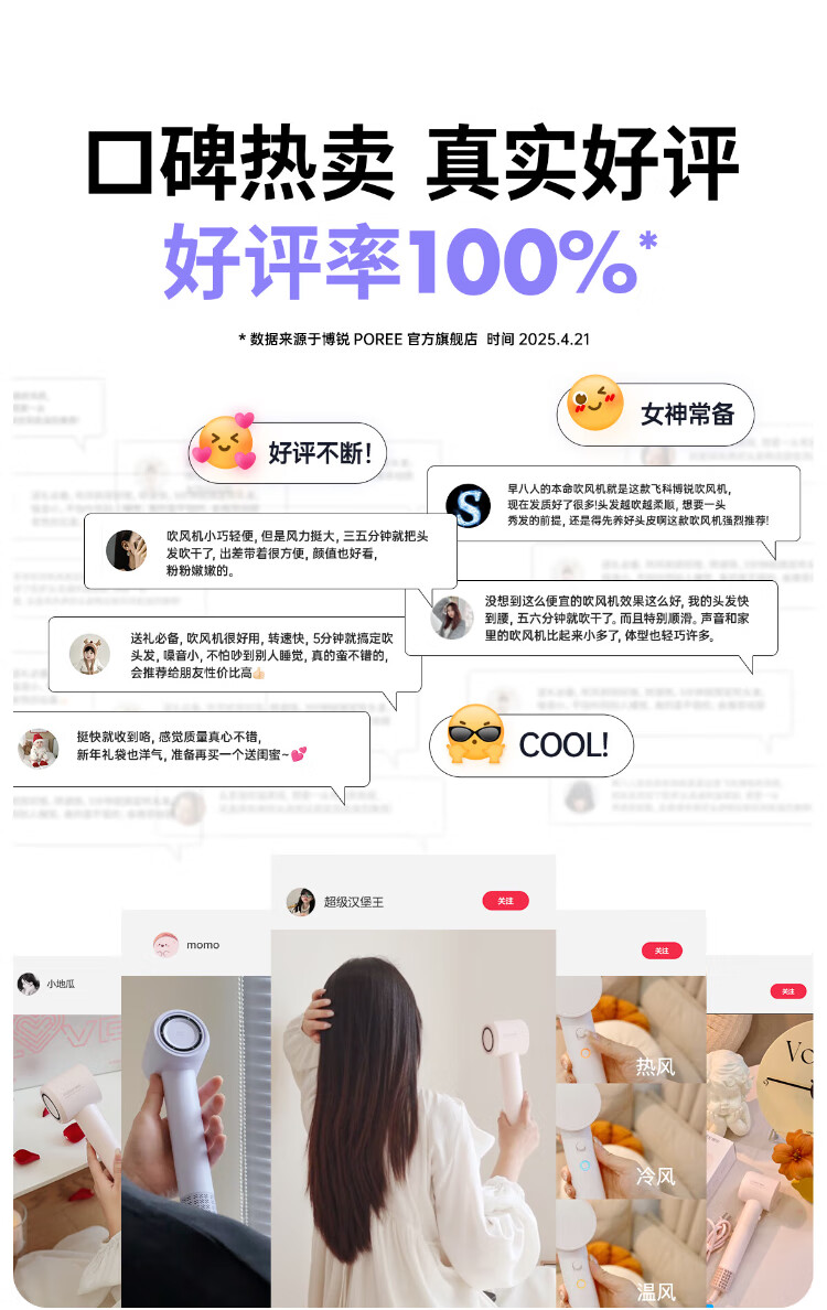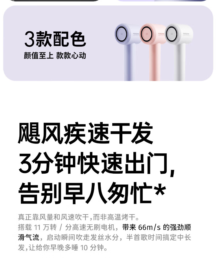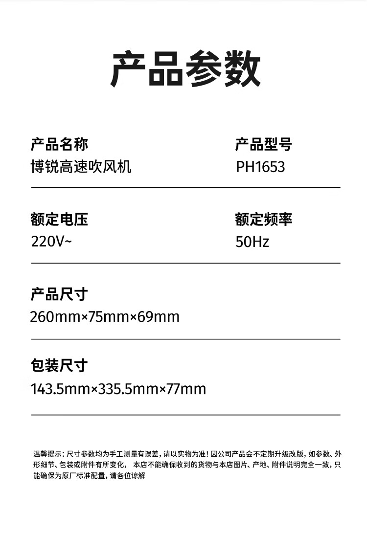 Feike Bo Rui hair dryer household high-power hair dryer student dormitory portable high wind low noise three-speed temperature 360 air nozzle hair dryer New Year gift for girlfriend heartfelt confession gift bag PH1629 hair dryer