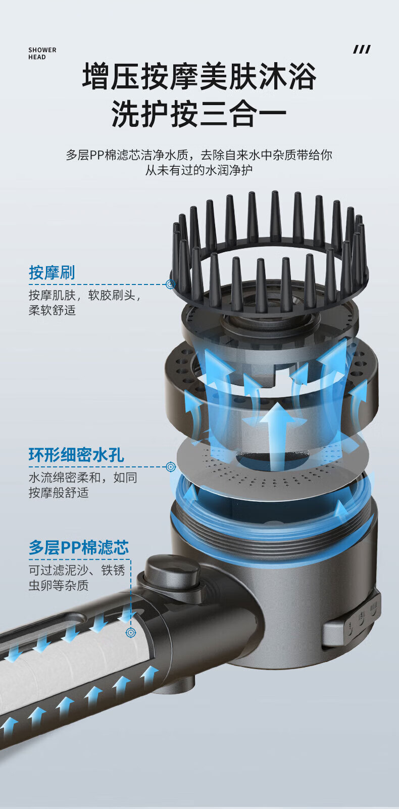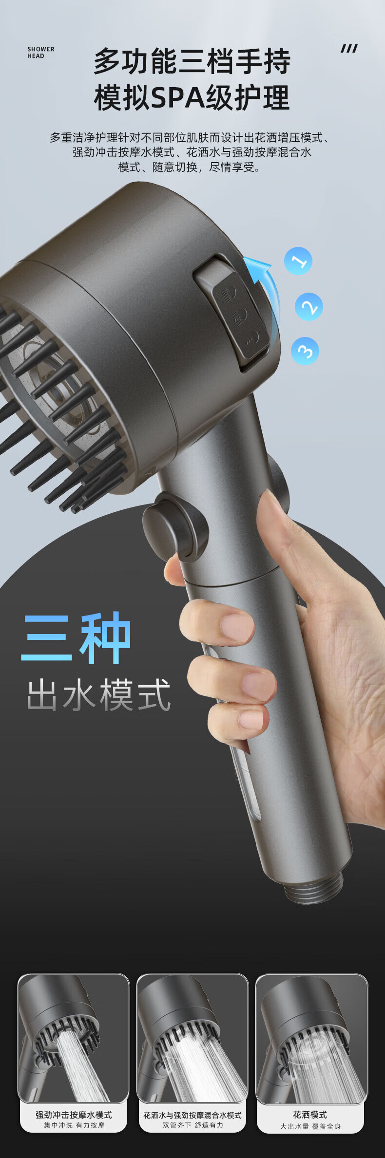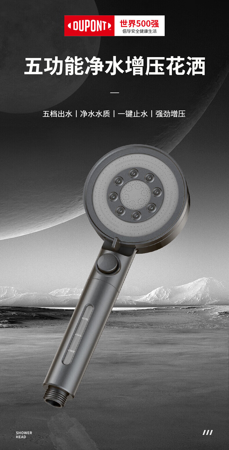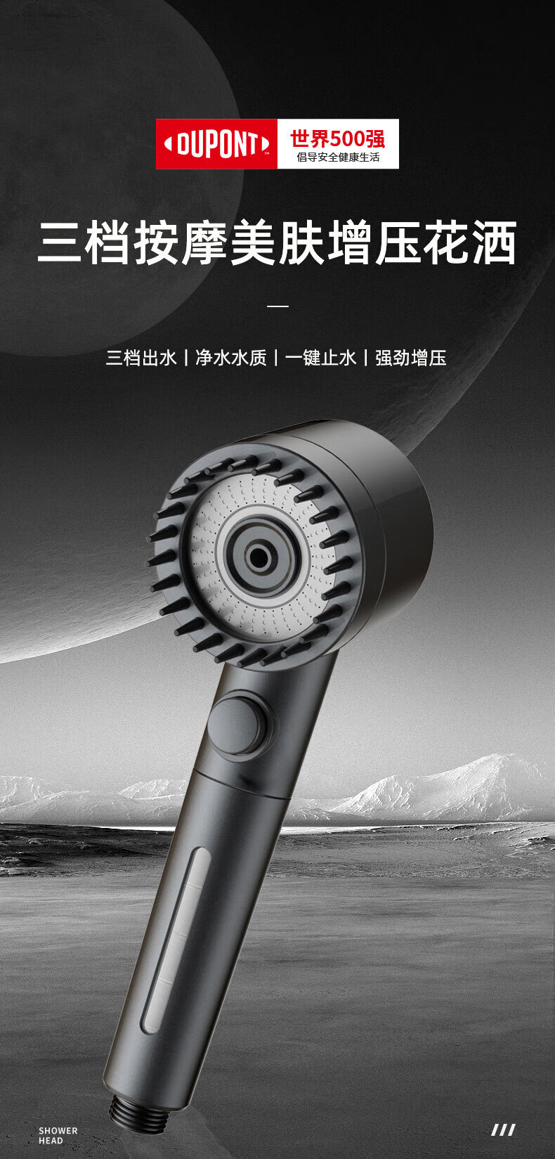 DuPont Shower Pressurized Shower Head Home Bathroom Handheld Pressurized Shower with Massage Shower Head Filter Beauty Shower Soft Silicone Massage/Three