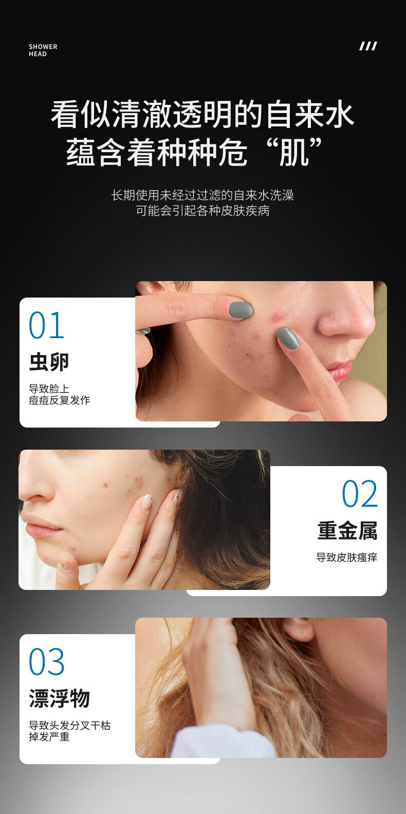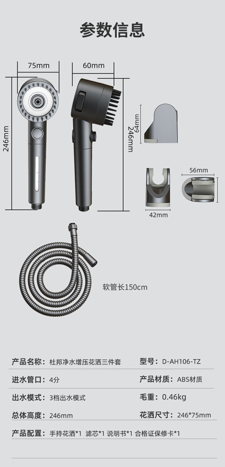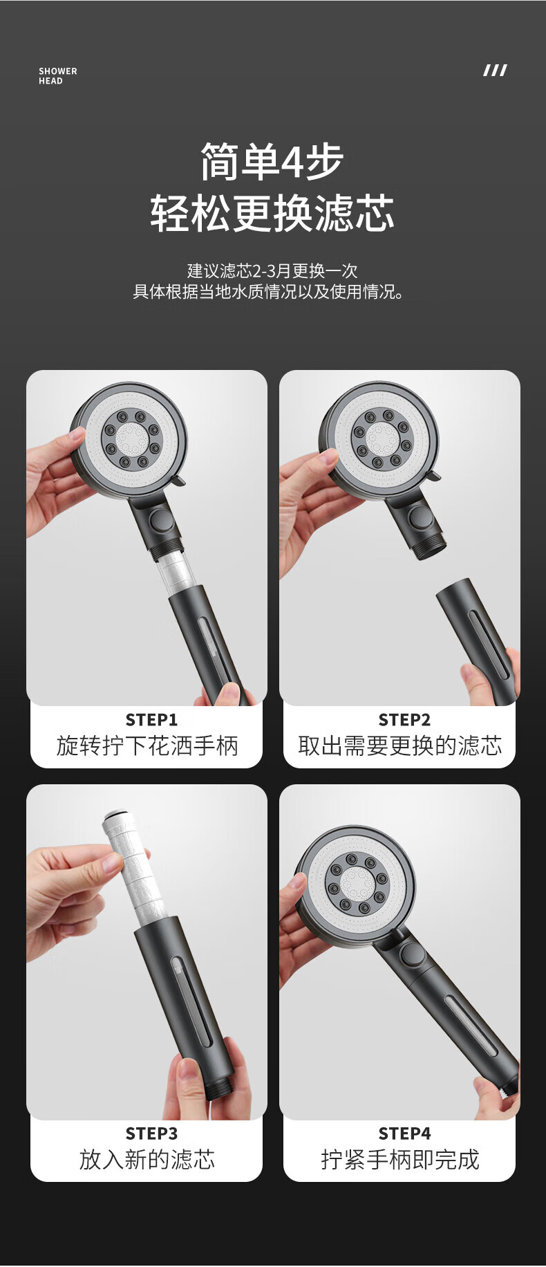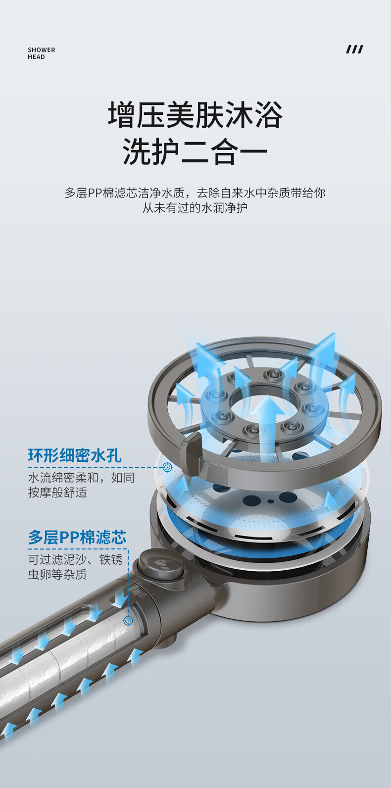 DuPont Shower Pressurized Shower Head Home Bathroom Handheld Pressurized Shower with Massage Shower Head Filter Beauty Shower Soft Silicone Massage/Three