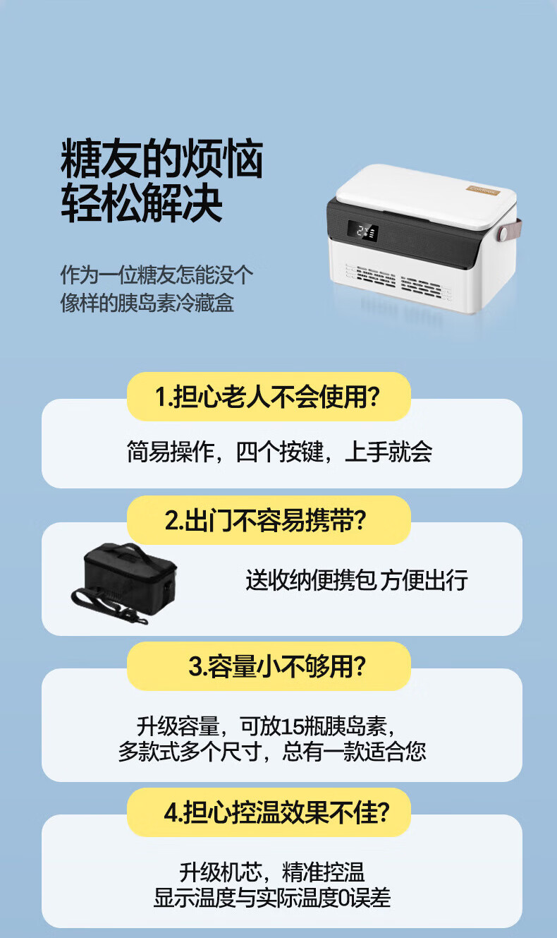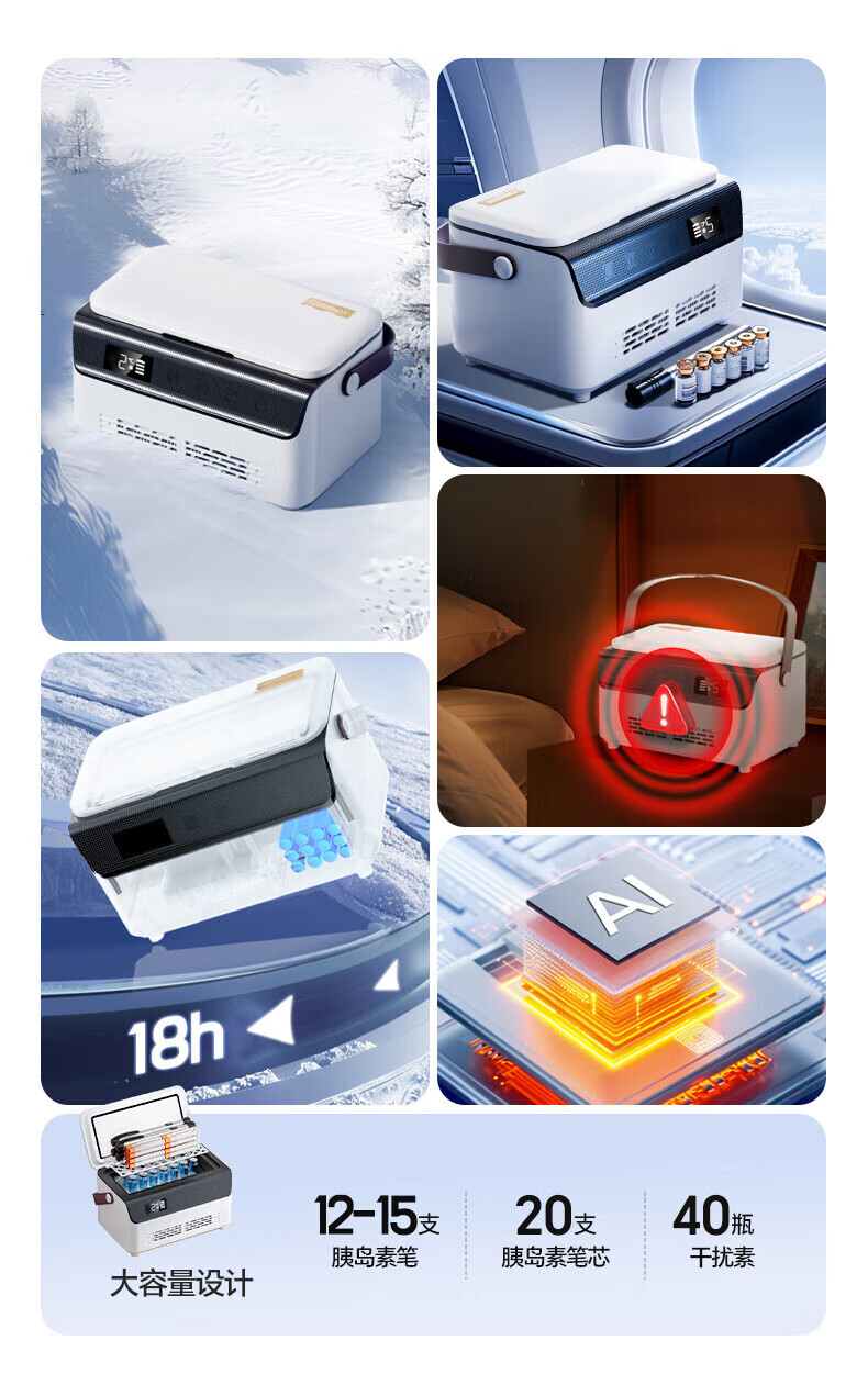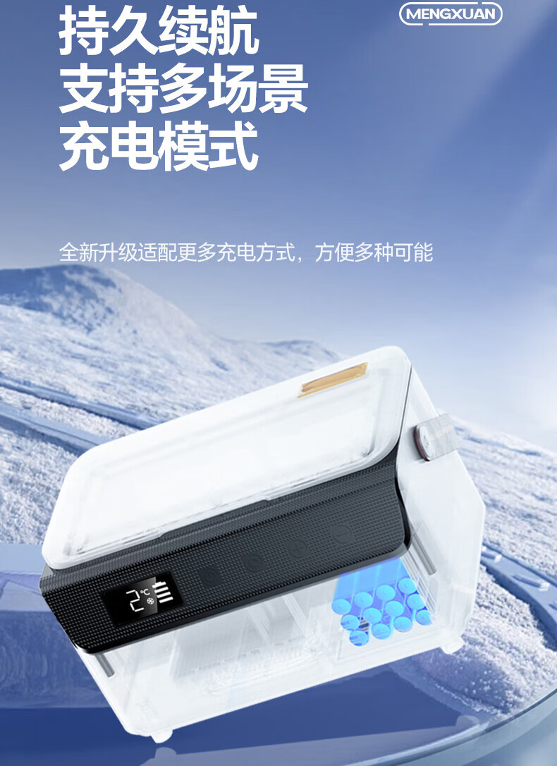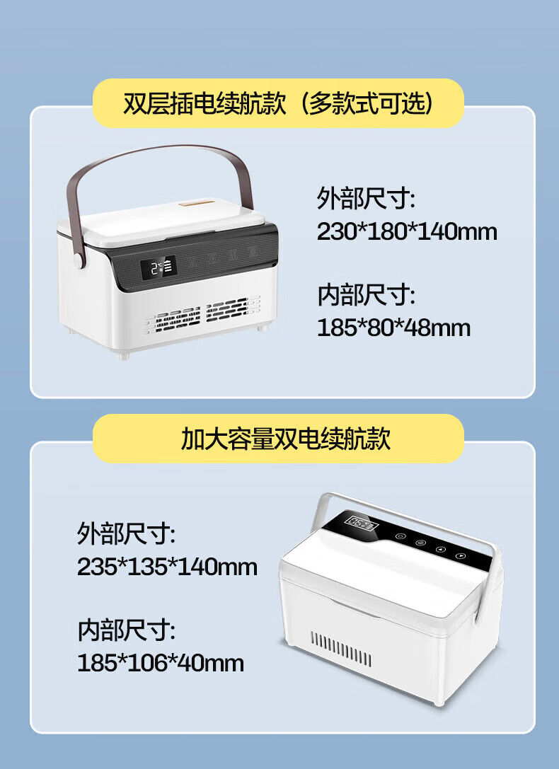 Mengxuan insulin refrigerated box portable medicine small refrigerator growth hormone interferon large capacity medical refrigeration box double layer - classified storage single battery life 6L rechargeable battery dual-purpose medicine refrigeration insulation refrigeration