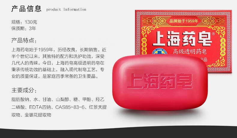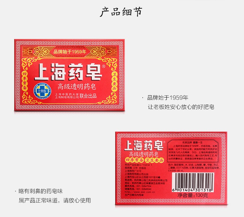 Shanghai Medicated Soap Absolute Antibacterial Hand Washing Bath Soap Old Brand Domestic Soap Transparent Soap 130g*4 Pieces