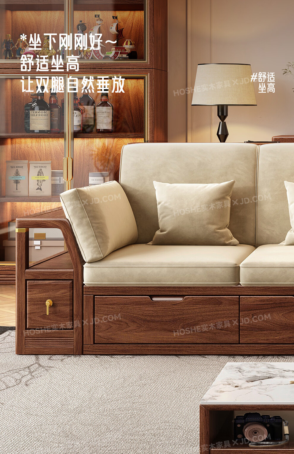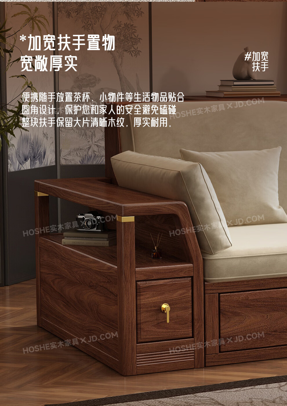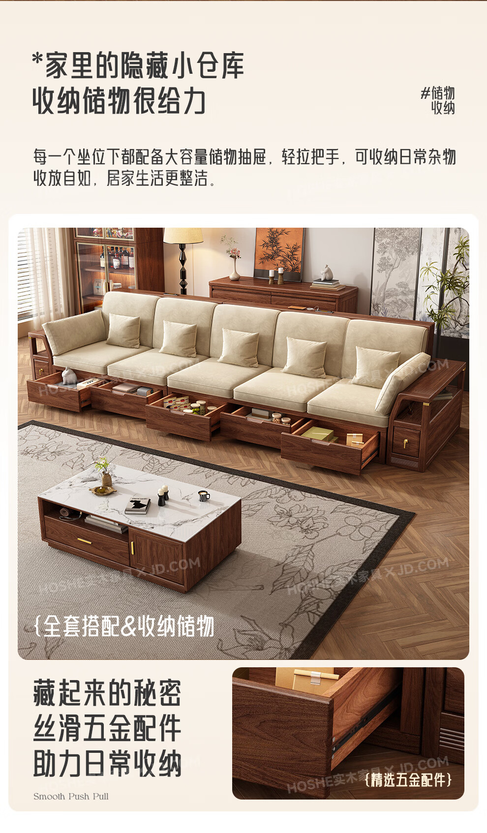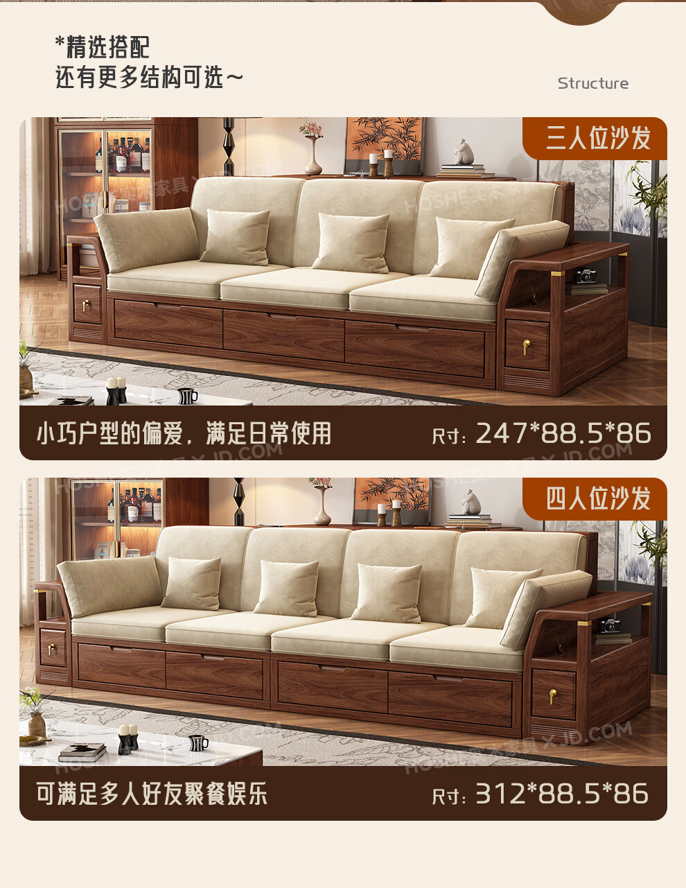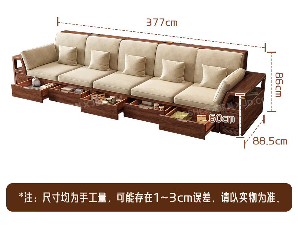 Harmony Home Sofa Medieval style black walnut solid wood sofa living room 2025 new storage furniture fabric sofa combination straight four-seater 2+2 with armrest pillow assembly