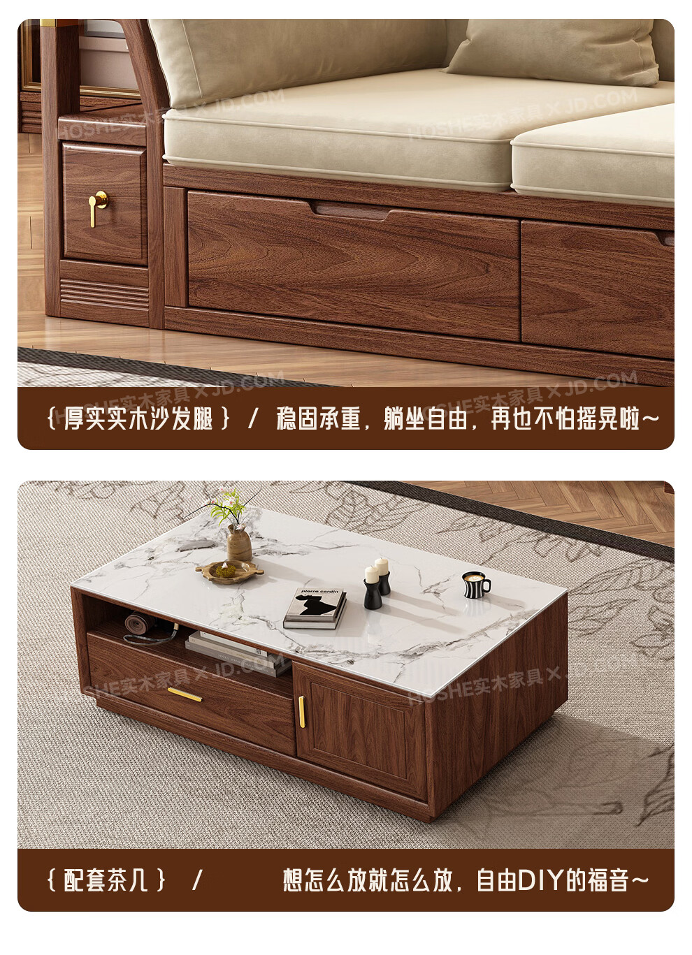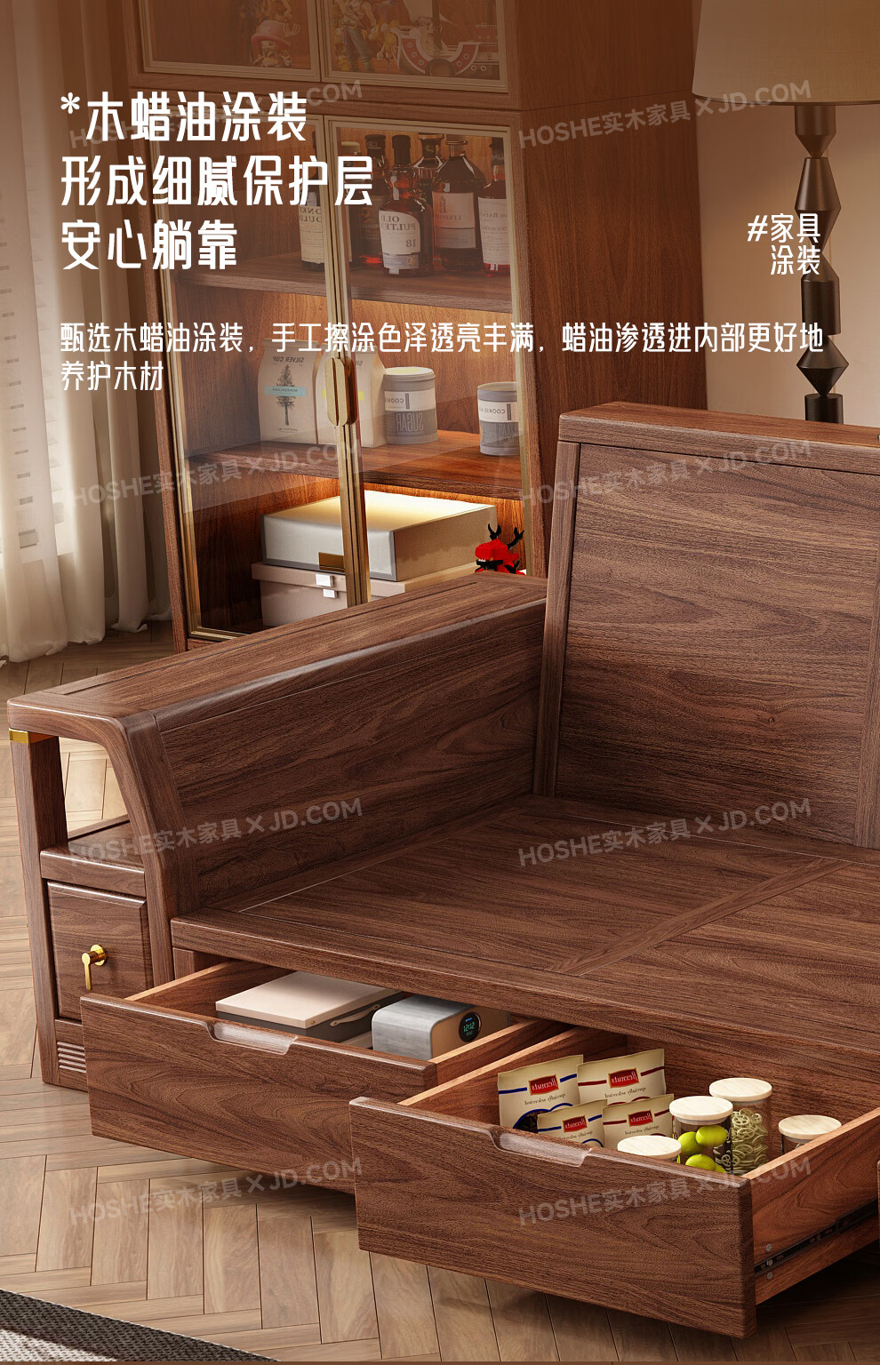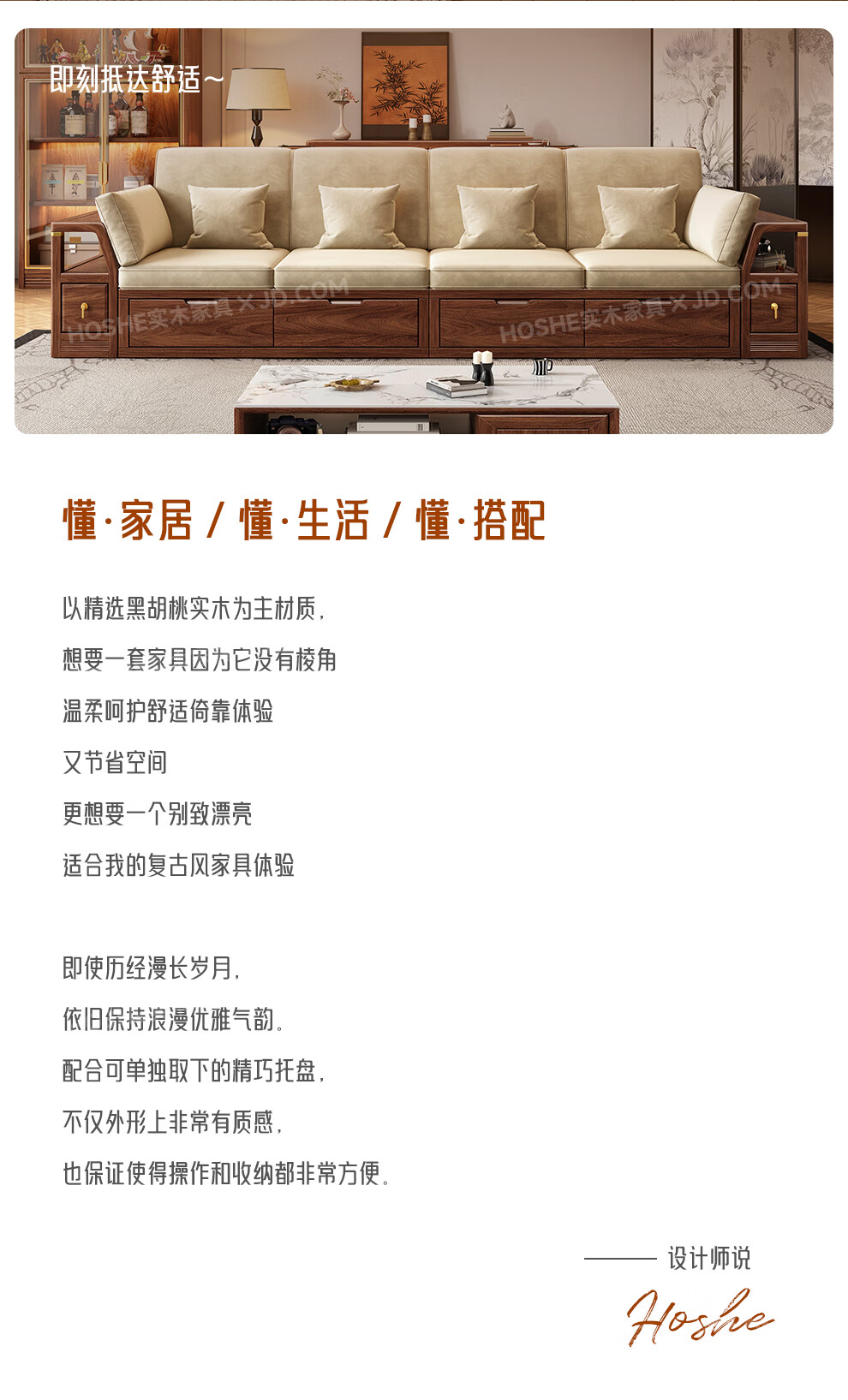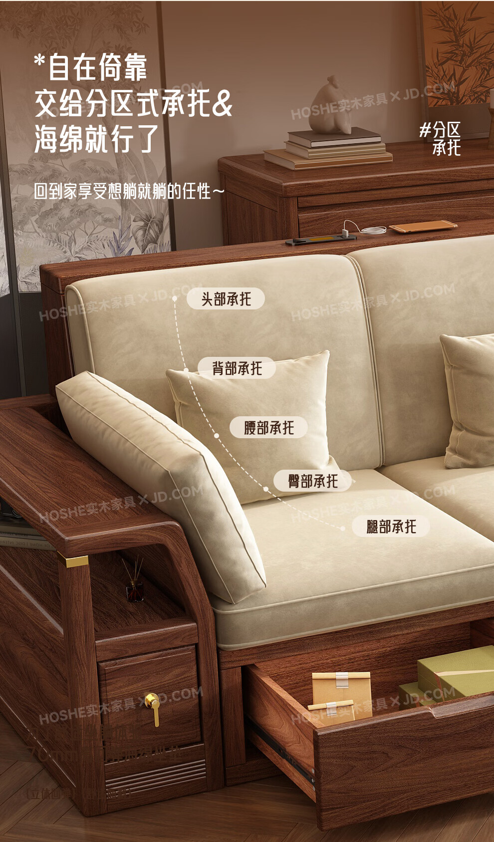 Harmony Home Sofa Medieval style black walnut solid wood sofa living room 2025 new storage furniture fabric sofa combination straight four-seater 2+2 with armrest pillow assembly