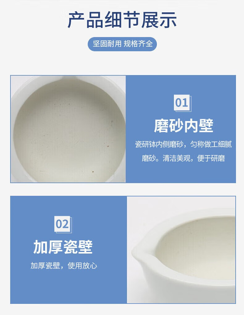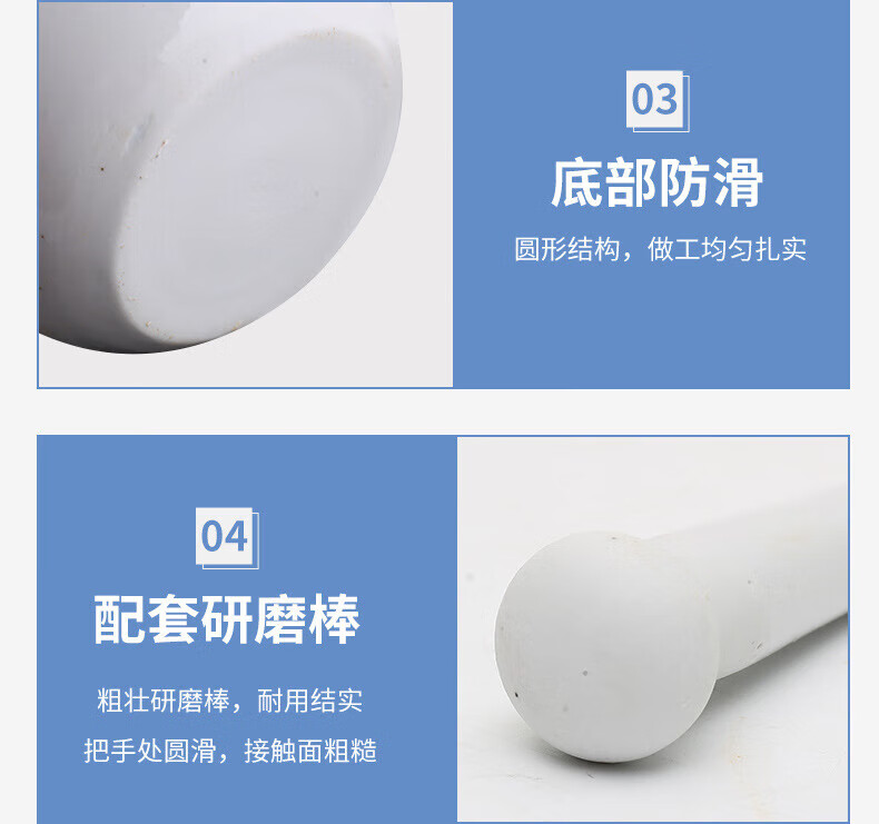 YUANZU ceramic mortar, mortar, grinding bowl, tamping medicine jar, grinding rod, mortar, pestle, Chinese and Western medicine grinding bowl, mashing bowl, tamping medicine set, bowl + stick + spoon + brush, frosted inner wall, thickened porcelain wall