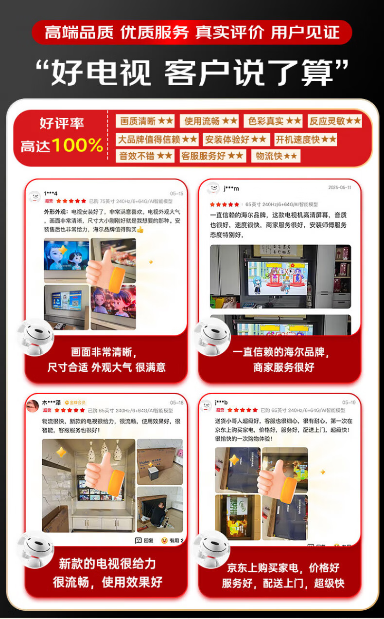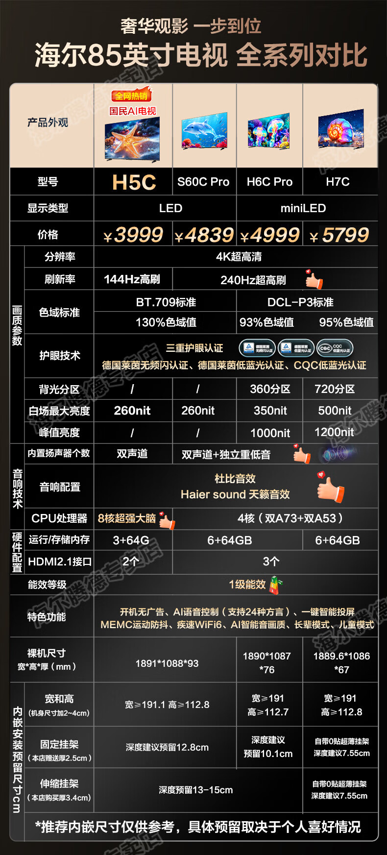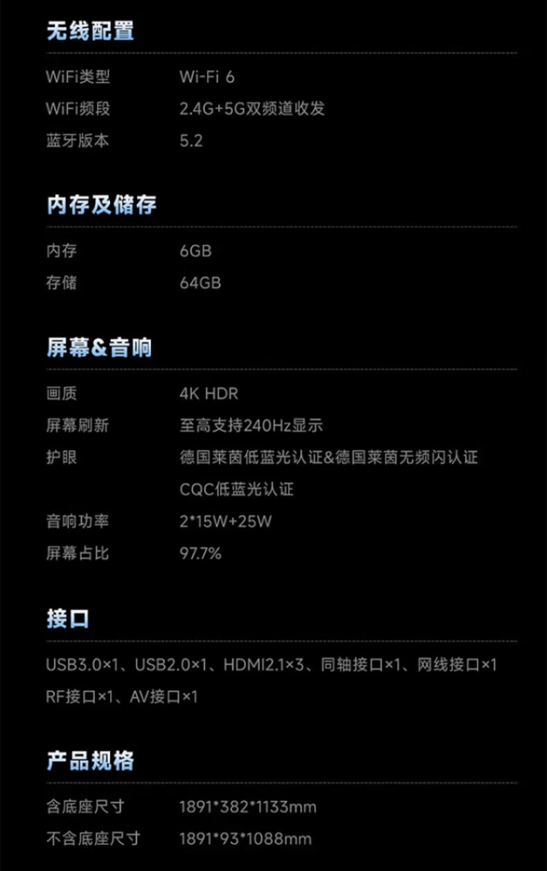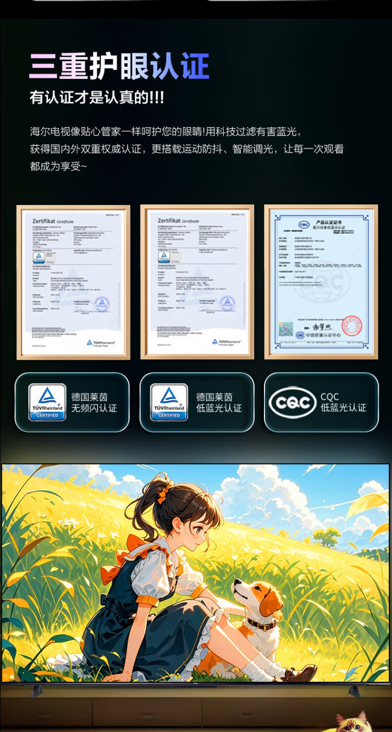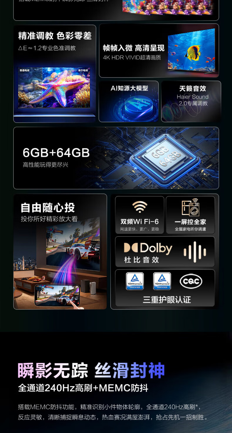 Haier TV 85-inch high-brush ultra-thin AI voice full-screen intelligent audio and picture quality MEMC anti-shake large-screen ultra-high-definition flat-panel TV 85-inch 3+64G/first-level energy efficiency/144HZ/H5C