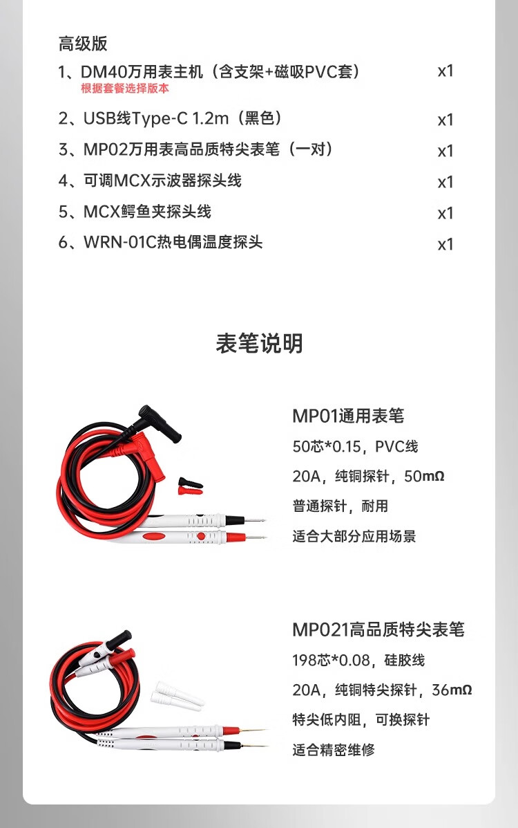 Punctual atomic digital multimeter 4-digit and a half oscilloscope signal generator three-in-one handheld portable DM40A-Basic version (MP01 test pen)