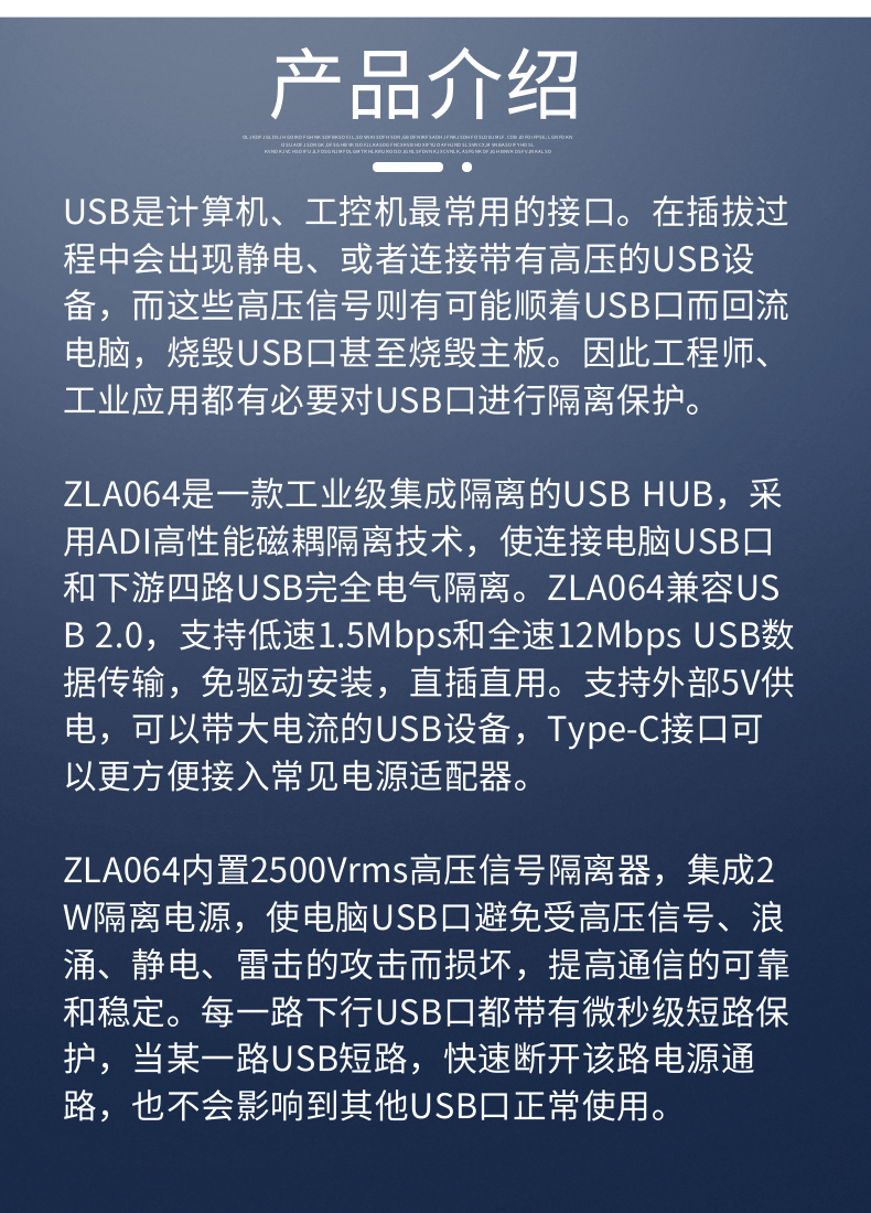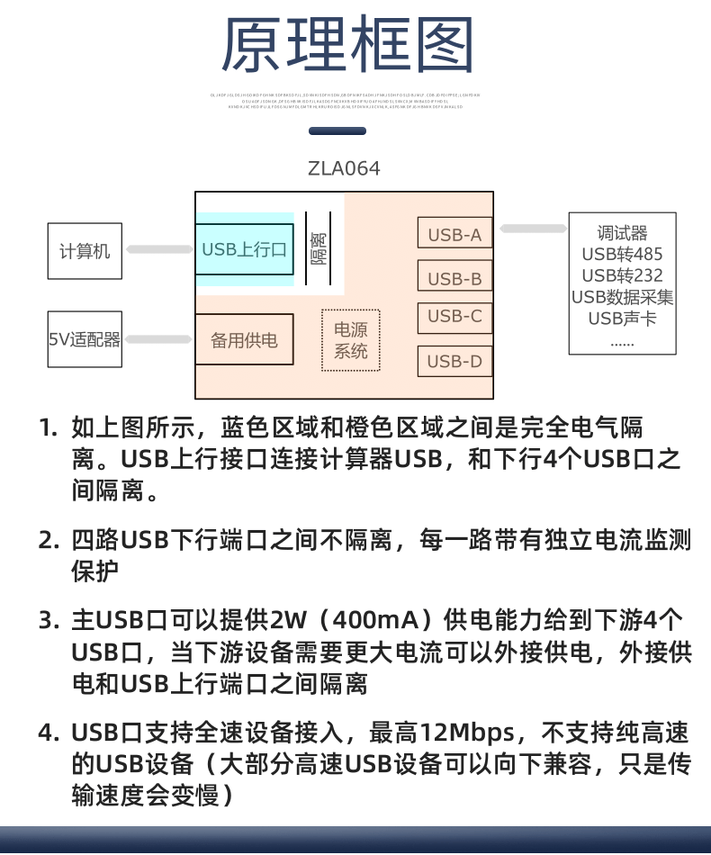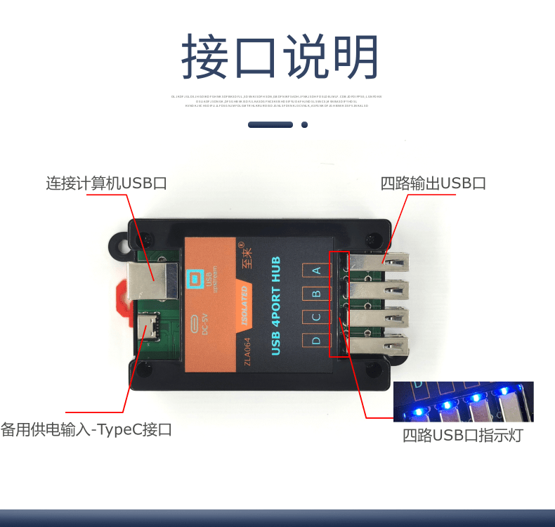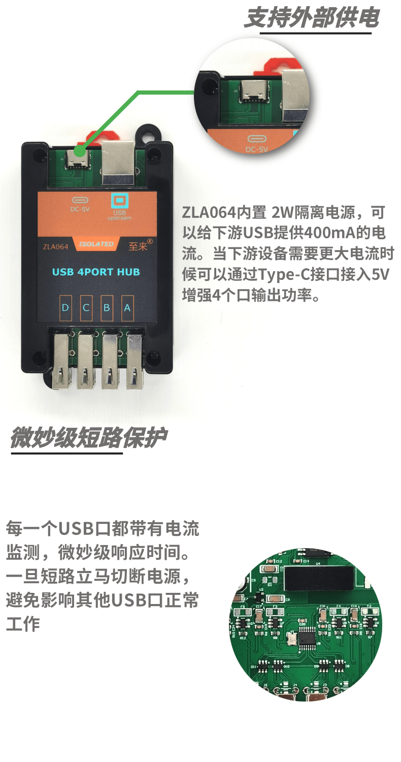 Zilai USB isolation HUB high-voltage USB isolator one-point four-port module industrial grade ZLA064 one-point four-port USB isolation hub