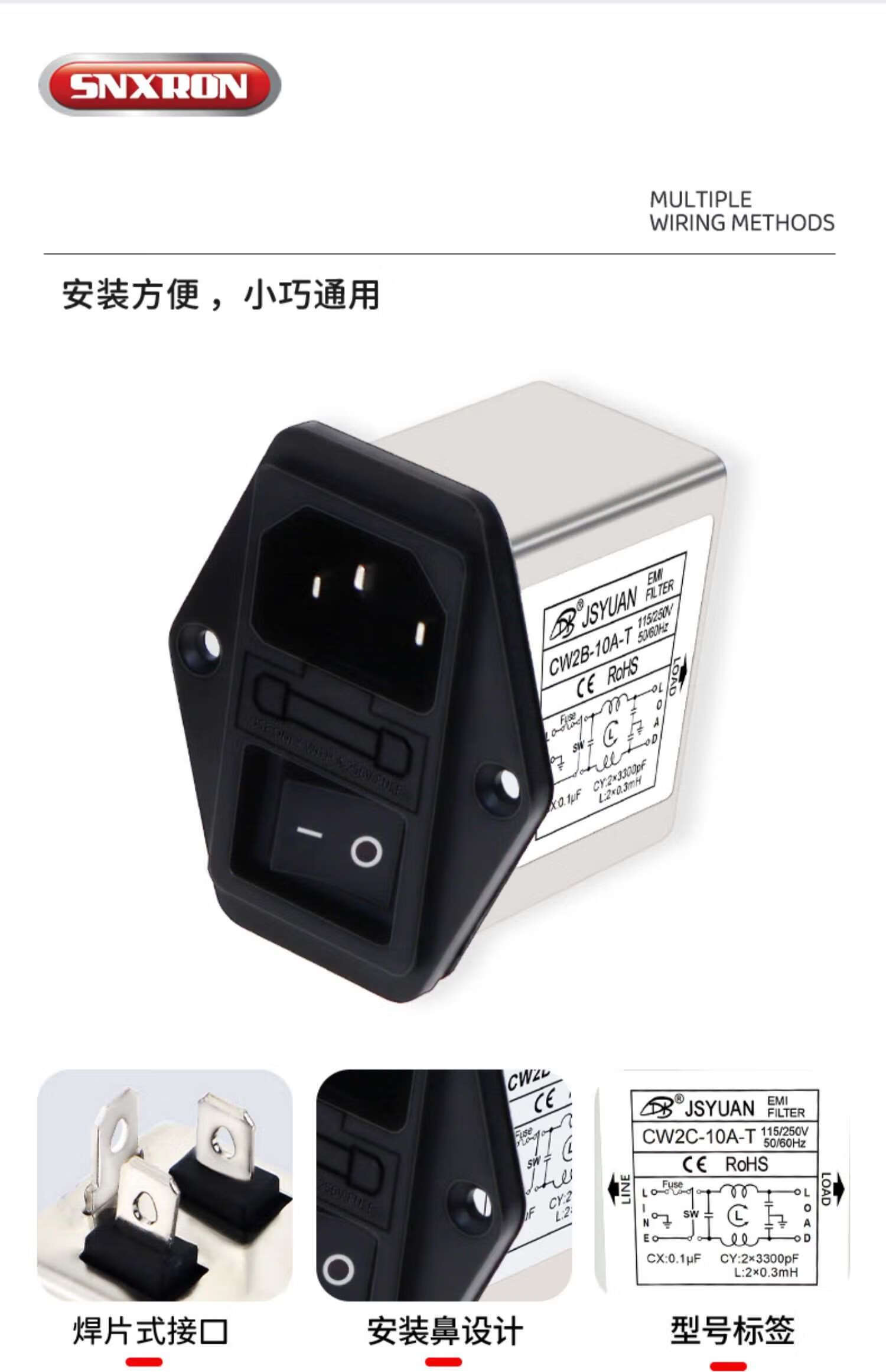CW2A-10A-T CW2B CW2C-10A-T socket double fuse switch 220V power filter CW1D CW2A-10A-T (002) double fuse 10A
