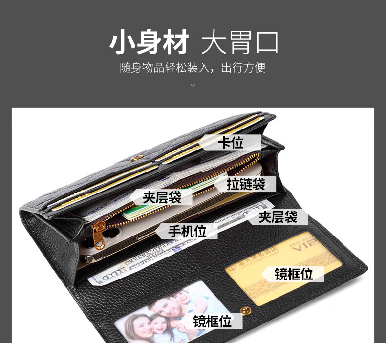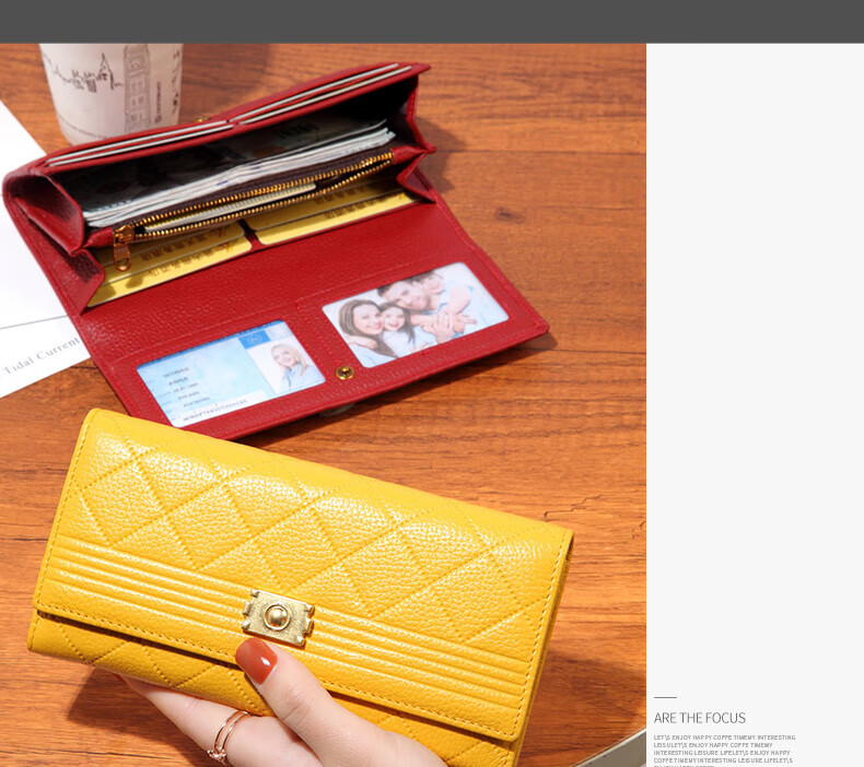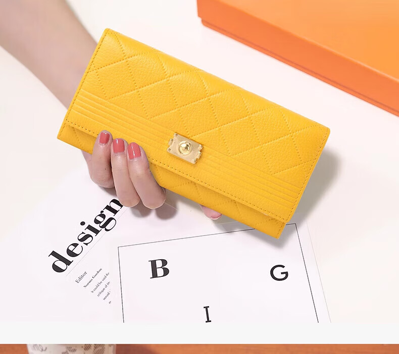 Kangaroo Yellow Lucky Leather Long Wallet Female Xiaofengfeng Internet Celebrity New Dual Photo Slot Wallet Large Capacity for Mobile Phone Valentine's Day Birthday Gift Box Yellow