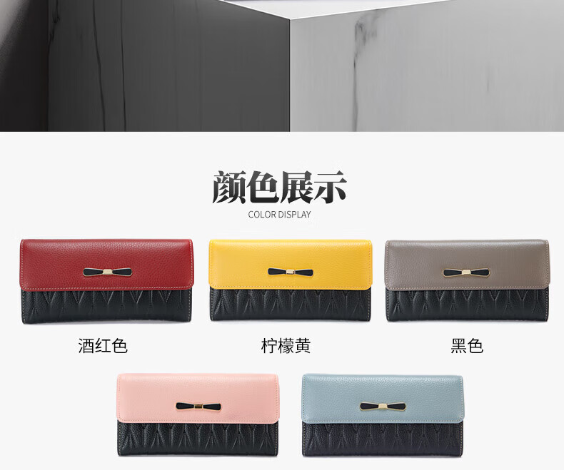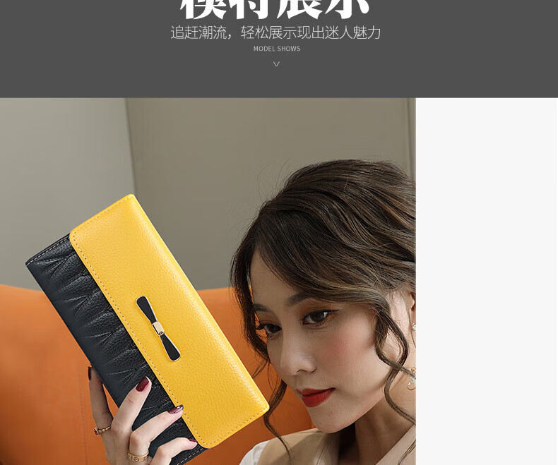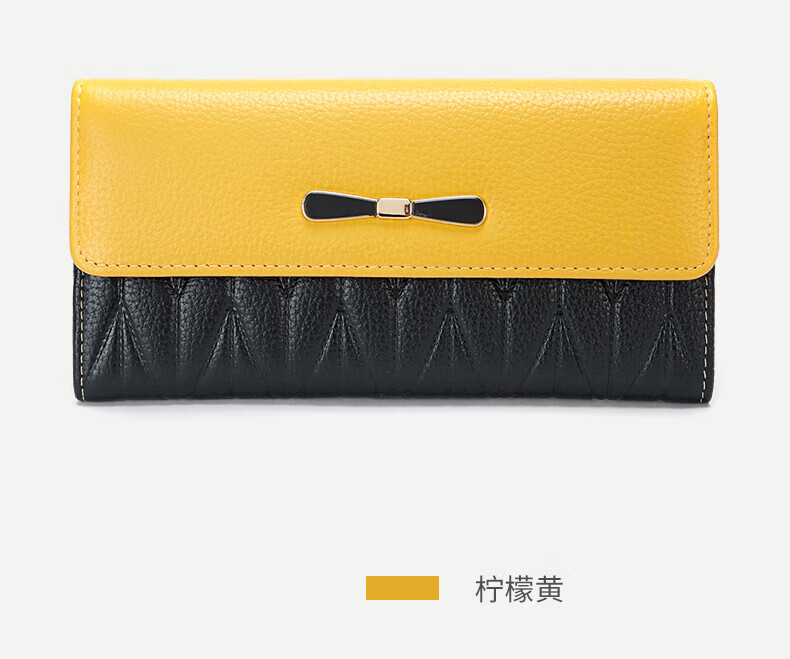 Kangaroo Internet Celebrity New Genuine Leather Long Wallet Feminine Large Capacity Mobile Phone Wallet Fashion Bow Leather Clutch Handbag Valentine's Day Birthday Gift Gift Box Lemon Yellow