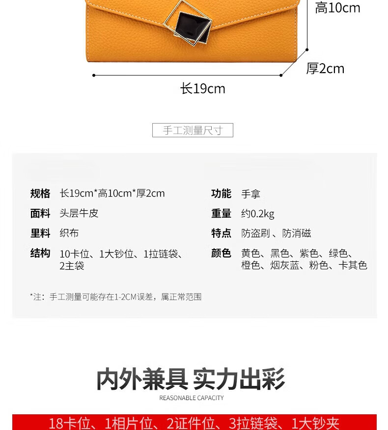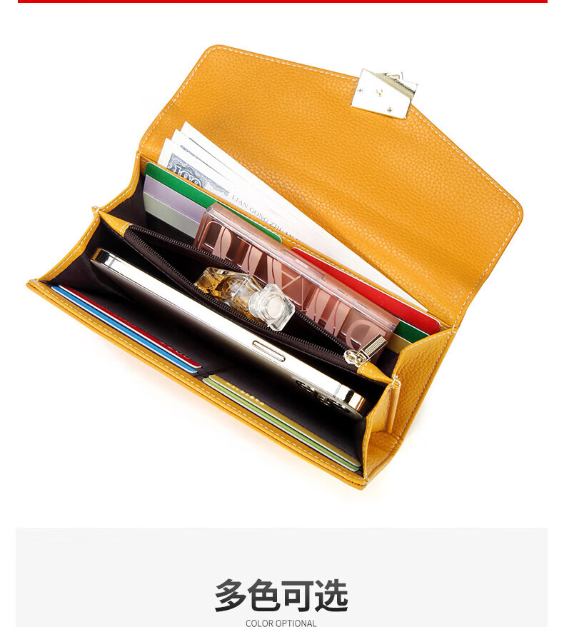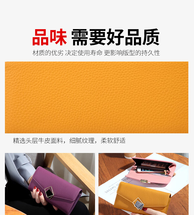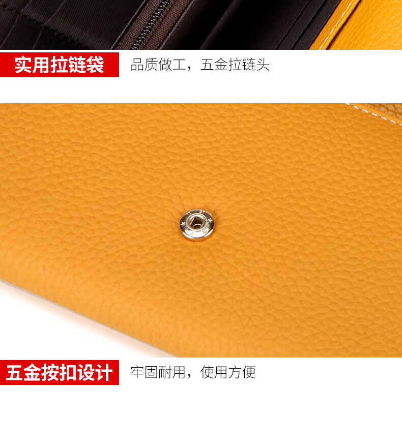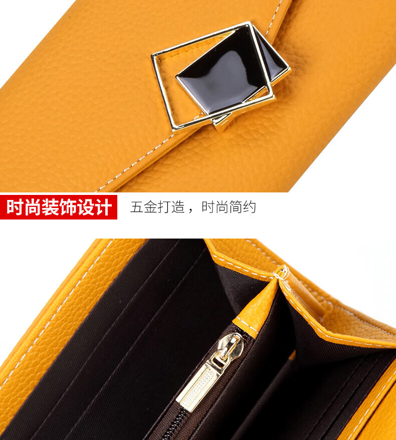 Kangaroo first-layer cowhide long ultra-thin wallet with large capacity for mobile phone 2026 new yellow lucky soft-surface genuine leather wallet Rich yellow-first-layer cowhide (can enlarge mobile phone)
