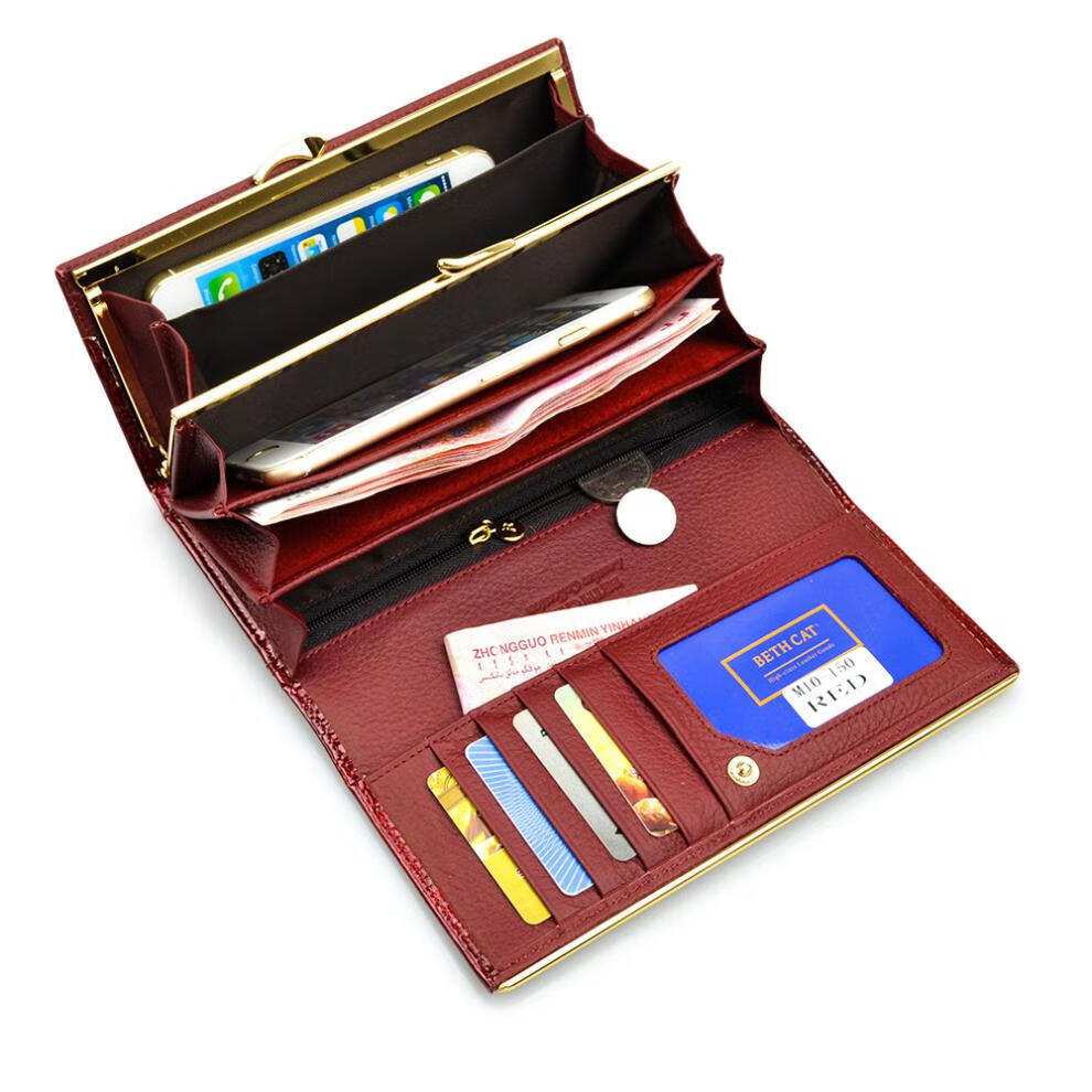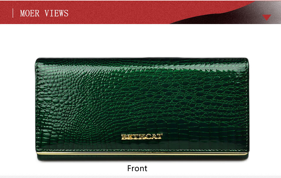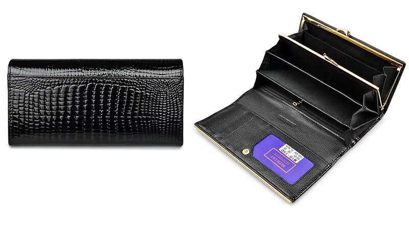 Kangaroo high-end crocodile pattern long wallet with feminine temperament 2025 new genuine leather large-capacity multi-compartment wallet for mobile phone High-end gift box green-made of genuine leather Gift box packaging