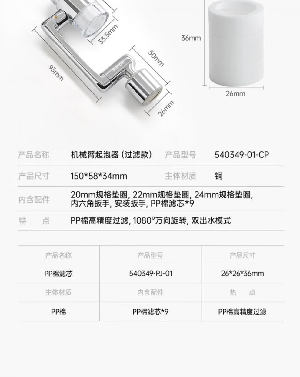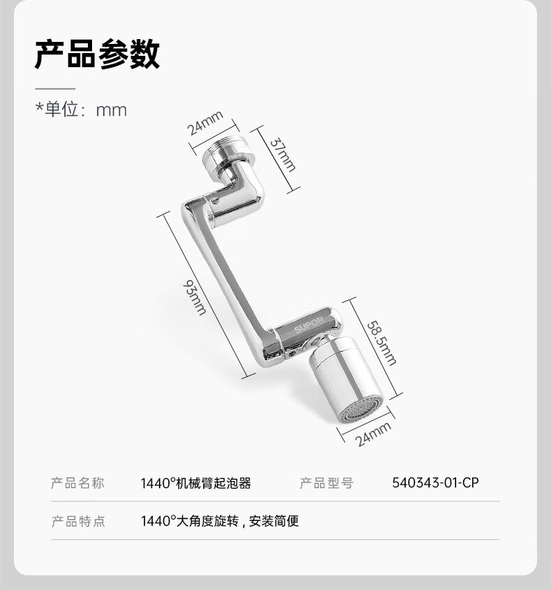 Supor Universal Faucet Mechanical Arm Extended Aerator Anti-splash Filter Aerator Rotatable Replacement Joint 1440 Mechanical Arm Upgrade - Anti-splash Cotton