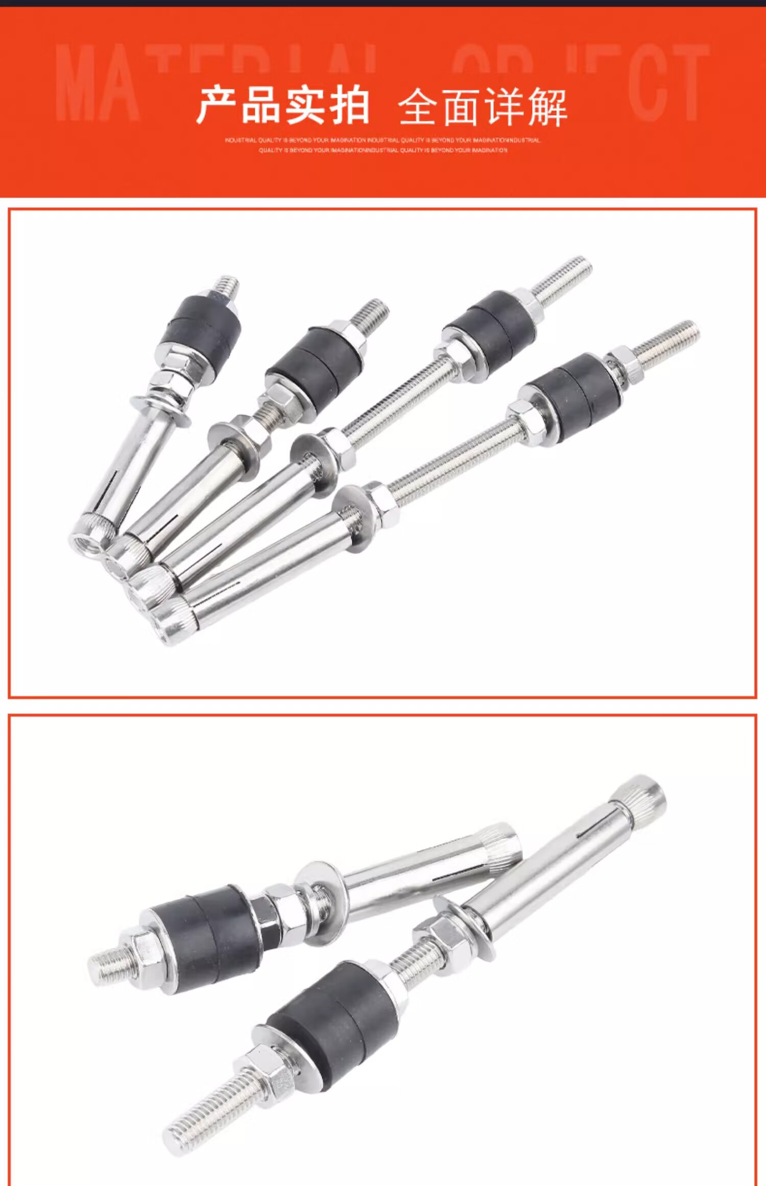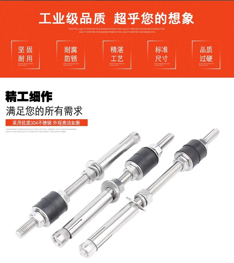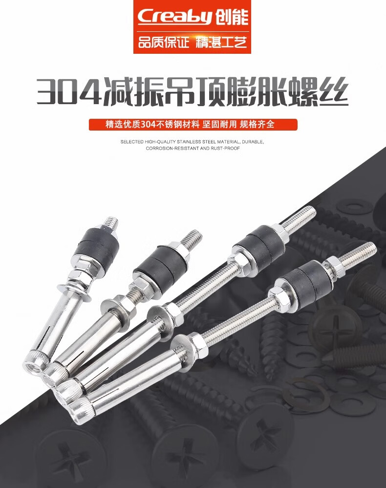 Creaby304 stainless steel shock-absorbing expansion screw air conditioner internal unit boom pull-out extended shock-absorbing bolt air duct machine ceiling M8x600 (2 pieces)