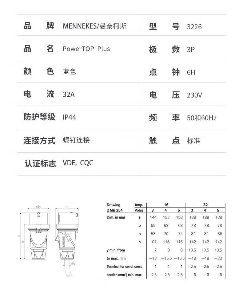 MENNEKES16A 32A 230V industrial plug waterproof and dustproof connector aviation male and female docking 3204 3226 16A-3P-3204 230V
