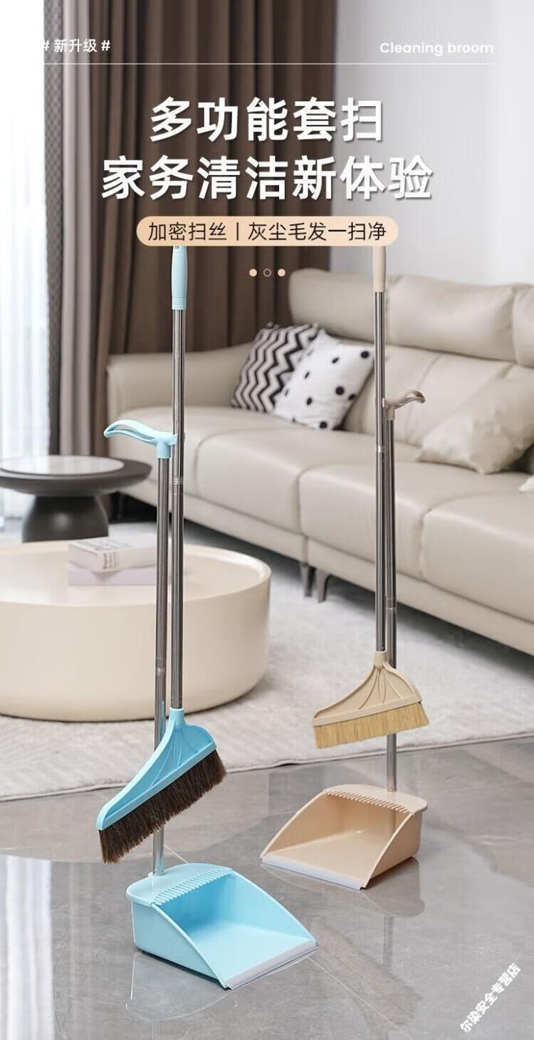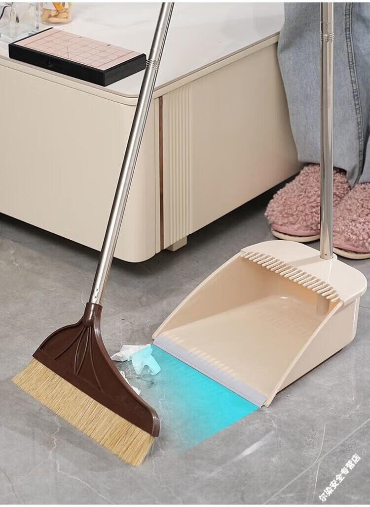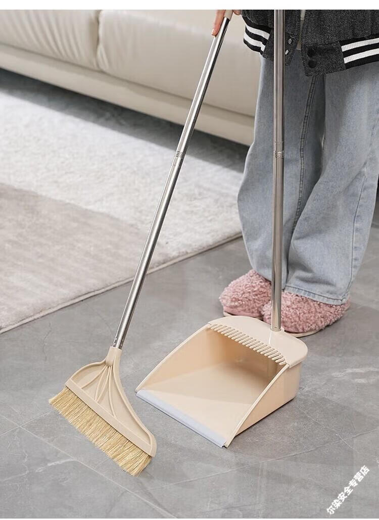 Pig bristle broom hair non-stick household dustpan combination set soft wood floor sweeper broom thick khaki pig bristle single broom
