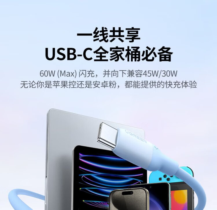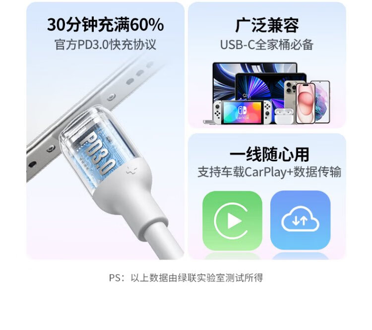 Greenlink suitable for iPhone15/16/17 data cable dual typec mobile phone charger cable PD fast charge ipadair two pack 6A high current 1.2m