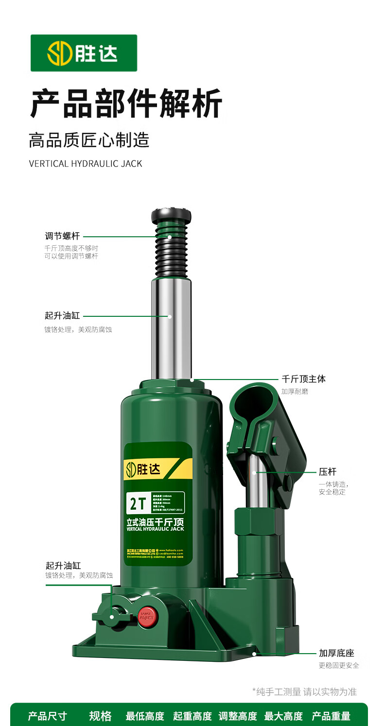 Shengda hydraulic jack vertical hydraulic 2-ton car off-road 10-ton 3-ton hand-operated tire changing tool national standard hydraulic vertical 5-ton thickened and larger version