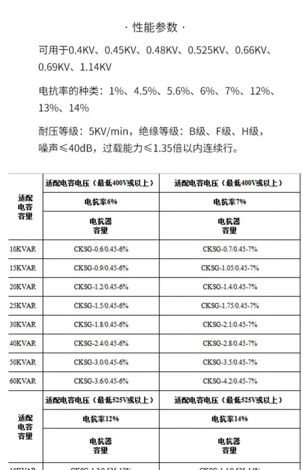 Cksg three-phase series reactor filter 30KVAR capacitor cabinet special reactance reactive compensation reactor 2.1 5KVAR 14% x total compensation 450v/partial compensation 250v