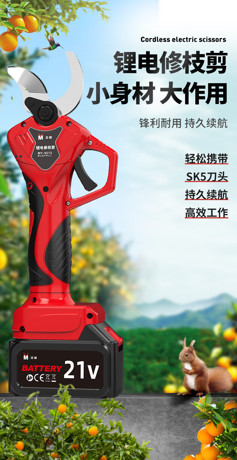 MAIYUE electric scissors, fruit tree rechargeable pruning shears, powerful lithium-ion pruning thick branch pruning machine, Pratt & Whitney wireless 4.0, two batteries and one charge, works 4-6