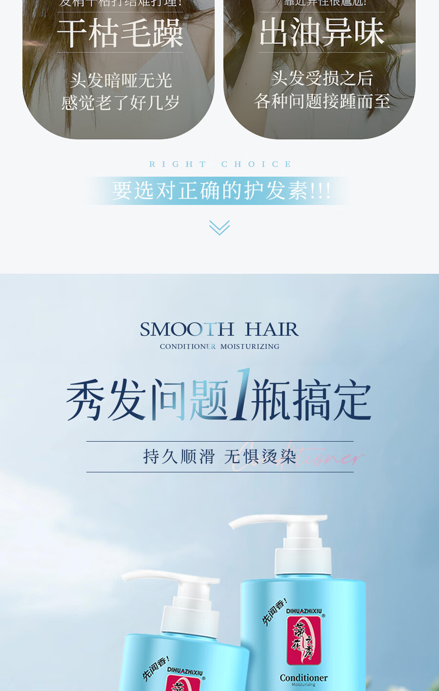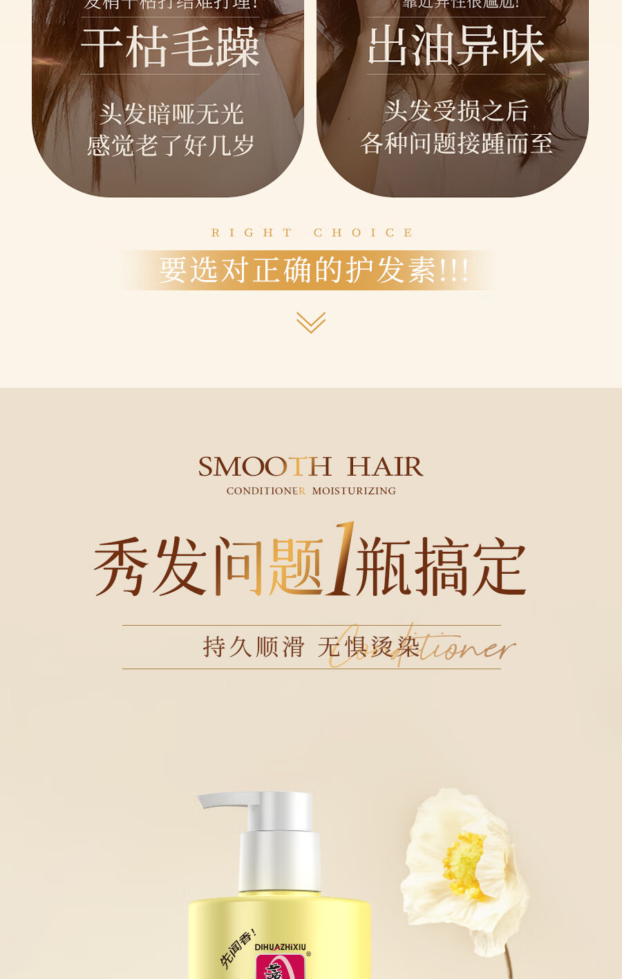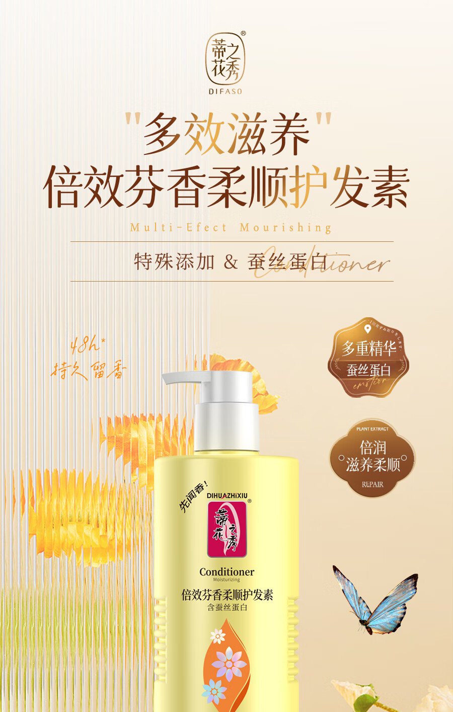 Dihuazhixiu Conditioner, Fragrance Smooth Conditioner, Nourishes, Repairs Damaged Perm and Dyeing, Improves Dryness and Frizz, Multi-effect Nourishing Silk Protein Conditioner 1000ml