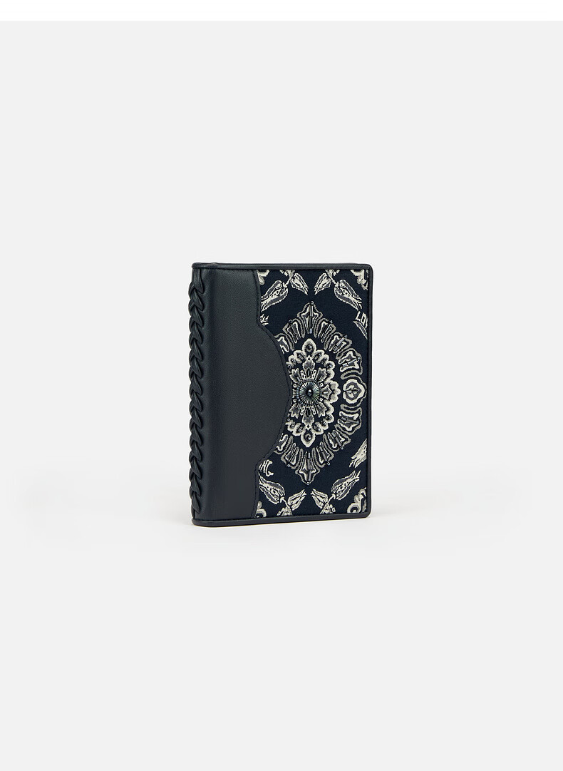 EP Yaying women's bag Qiannan totem stitching cowhide storage card holder wallet 2025 new product B301B navy blue 1