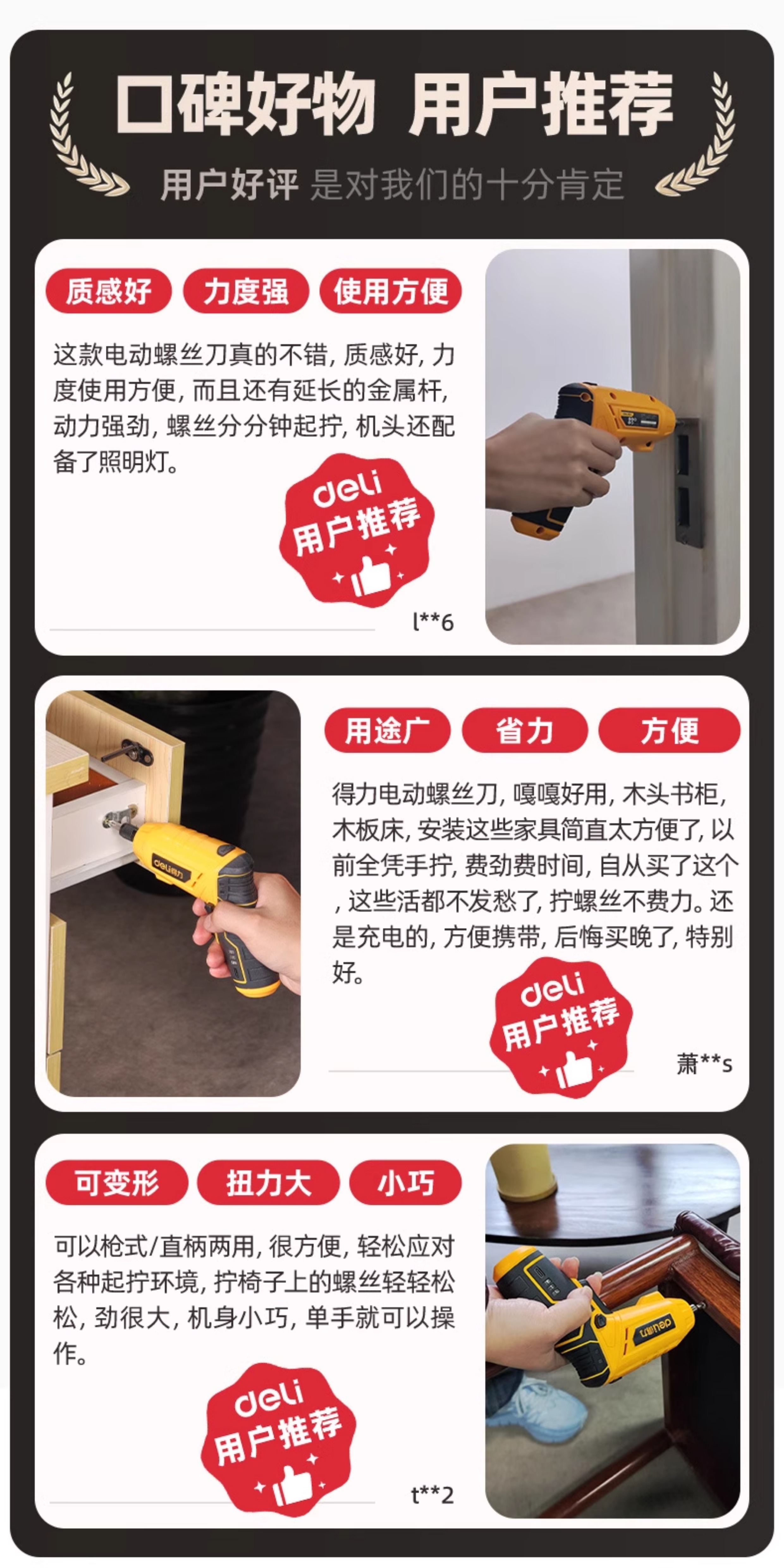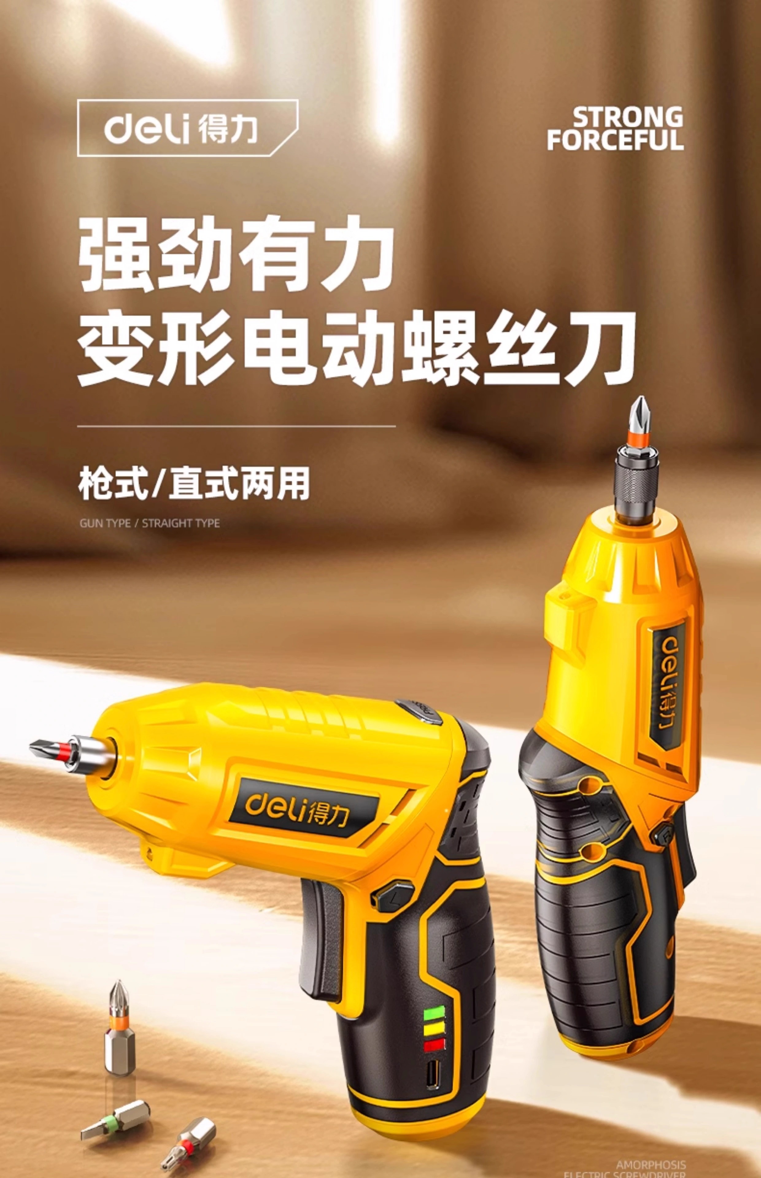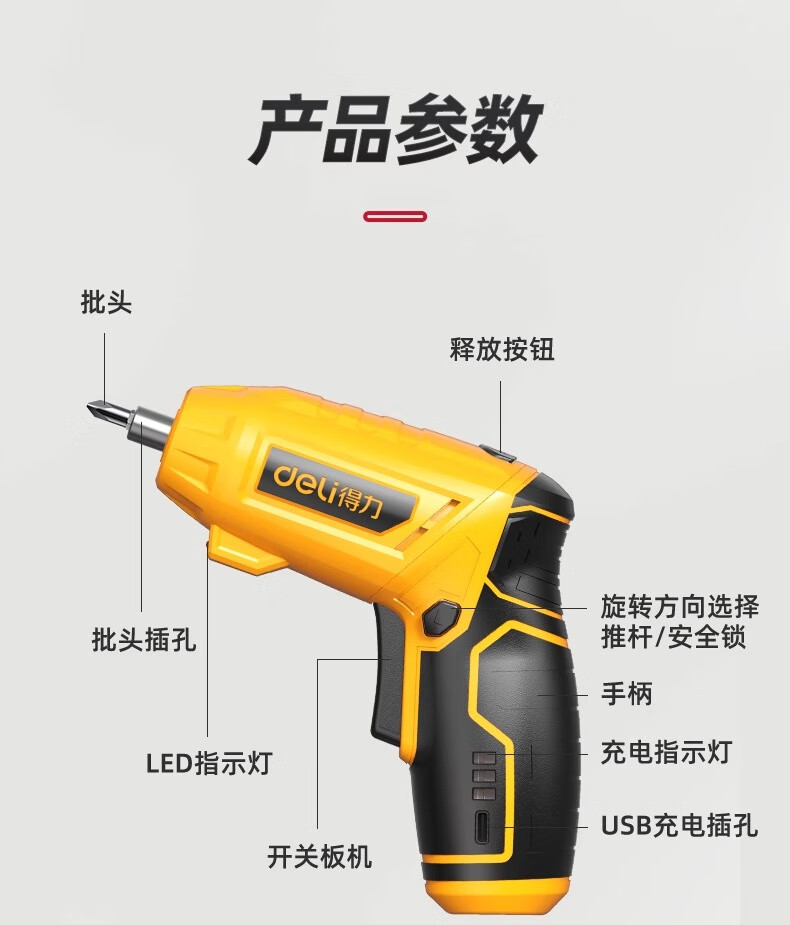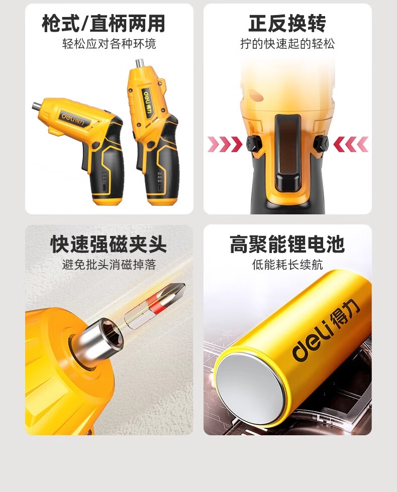 Deli electric screwdriver household electric drill small handheld rechargeable lithium battery multifunctional bit gun screwdriver set essential for home decoration 22-piece set strong magnet and large torque