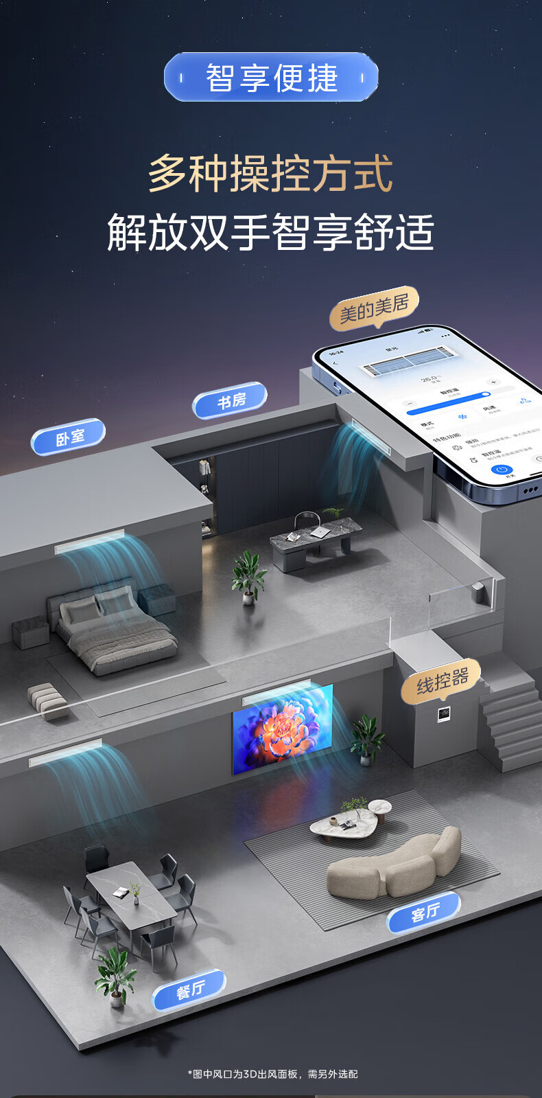 Midea central air conditioner, one to four, one to five, starlight multi-split home new first-level energy efficiency, full DC inverter air conditioner (single outdoor unit, please contact customer service for details, large 6 horsepower, first-level energy efficiency, 160, one to five